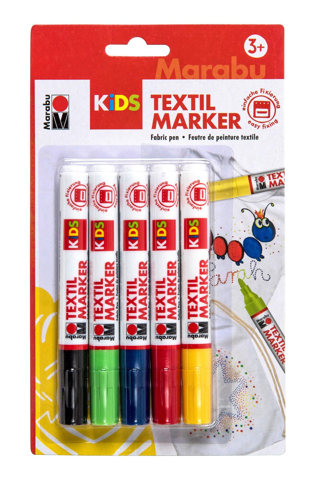 Die Marabu KiDS Textilmarker sind die perfekte Wahl für kreative Köpfe, die ihre Textilien individuell gestalten möchten. Mit einer Strichstärke von 3.0 mm und einer praktischen Rundspitze ermöglichen sie präzise und vielseitige Anwendungen auf fast allen Textilien. Diese Marker sind nicht nur in einer Vielzahl von lebhaften Farben erhältlich, darunter Gelb, Rot, Blau, Grün und Schwarz, sondern auch wasserfest und schnell trocknend. Dadurch kannst du deine Designs schnell umsetzen, ohne dir Gedanken über Verschmieren machen zu müssen. Die Anwendung ist kinderleicht und ideal für Bastelprojekte, Schulprojekte oder einfach zum Verschönern von Kleidung und Accessoires. Die Farben sind so konzipiert, dass sie auch nach dem Waschen strahlend bleiben. Die maximale zulässige Waschtemperatur des Farbauftrages beträgt 60 °C, was bedeutet, dass deine Kunstwerke auch nach mehreren Wäschen erhalten bleiben. Jede Packung enthält fünf Textilmarker, die dir eine breite Palette an Möglichkeiten bieten, um deine Kreativität auszudrücken. Egal, ob du T-Shirts, Taschen oder andere Textilien gestalten möchtest, diese Marker sind die ideale Wahl für kleine Künstler und kreative Erwachsene. Der runde Griff sorgt zudem für eine angenehme Handhabung, sodass das Zeichnen und Schreiben mühelos von der Hand geht. Die Marabu KiDS Textilmarker sind nicht nur ein tolles Werkzeug für kreative Projekte, sondern auch eine wunderbare Möglichkeit, persönliche Geschenke zu gestalten oder deine Kleidung zu individualisieren. Lass deiner Fantasie freien Lauf und entdecke die Freude am Gestalten mit diesen hochwertigen Textilmarkern.Technische Daten