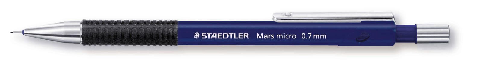Der STAEDTLER Druckbleistift MARSMICRO ist die perfekte Wahl für alle, die beim Schreiben und Zeichnen Wert auf Präzision und Komfort legen. Mit einem eleganten blauen Design und einer durchdachten Konstruktion bietet dieser Druckbleistift nicht nur ansprechende Ästhetik, sondern auch hervorragende Funktionalität. Der gummierte Griff mit Rillen sorgt für eine angenehme Handhabung und ermöglicht ein ermüdungsfreies Arbeiten, egal ob du lange Texte verfasst oder kreative Skizzen anfertigst. Die Mine des MARSMICRO ist bruchsicher und federnd gelagert, was bedeutet, dass du dir keine Sorgen um häufiges Abbrechen machen musst. Mit einer Strichstärke von 0.7 mm und dem Härtegrad HB eignet sich dieser Bleistift ideal für feine Linien und präzise Zeichnungen. Zudem ist der Druckbleistift nachfüllbar, sodass du ihn über einen langen Zeitraum hinweg nutzen kannst, ohne auf Qualität verzichten zu müssen. Ein praktischer Clip ermöglicht es dir, den Bleistift sicher an deinem Notizbuch oder deiner Tasche zu befestigen, sodass er immer griffbereit ist. Ein weiteres Highlight ist der integrierte Radierer, der dir das schnelle Korrigieren von Fehlern ermöglicht, ohne dass du zusätzliche Utensilien mitnehmen musst. Der STAEDTLER Druckbleistift MARSMICRO ist somit nicht nur ein Werkzeug, sondern ein zuverlässiger Begleiter für Schule, Studium und Beruf. Vertraue auf die Qualität von STAEDTLER und erlebe, wie dieser Druckbleistift deine kreativen Ideen zum Leben erweckt.Technische Daten