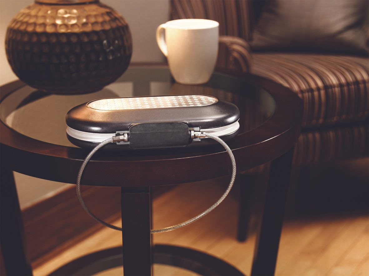 - Robuste, schlagfeste ABS-Konstruktion, die Box kann mittels integriertem Kabel an einem Gegenstand am Fußboden befestigt werden