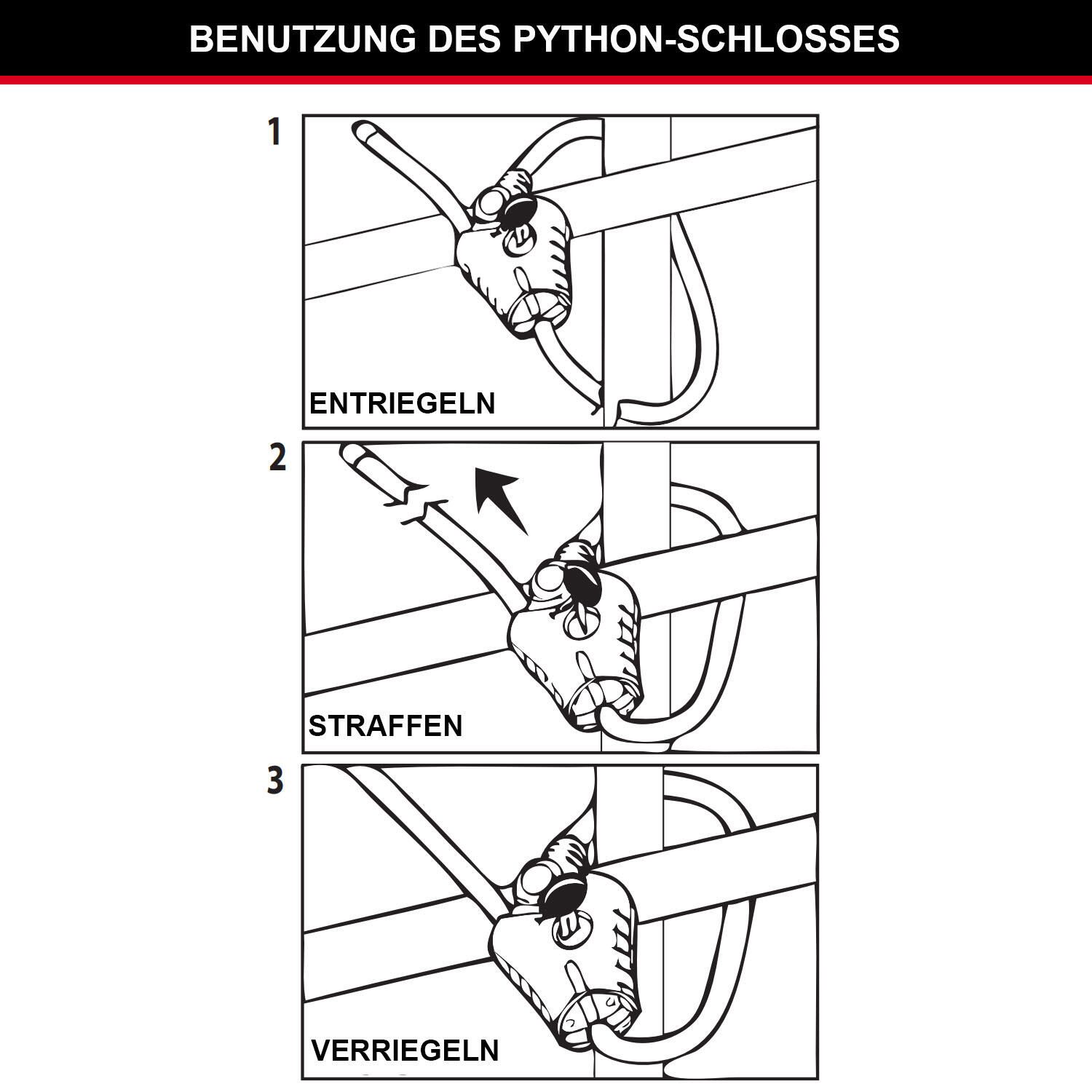 - Patentierter Verschlussmechanismus zieht das Kabel in jeder Position von 30 cm bis 4,5 m für unbegrenzte Verriegelungspositionen straff. Kabel aus 100 % Stahldrahtgeflecht. Wetterfestes und rostfreies Schlossgehäuse und Kabel. Geeignet für z. B. Zäune,