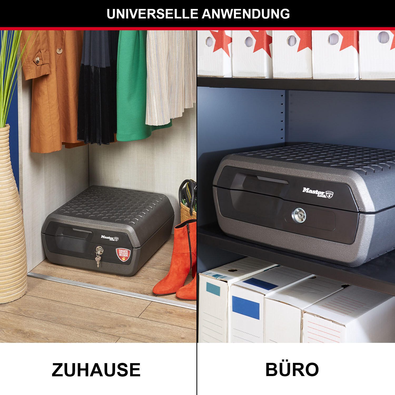 Die Sicherheitskassette LCFW30100 von Master Lock® verbindet Funktionalität mit Sicherheit und ist damit die ideale Lösung für den Schutz wertvoller Papiere in Büro, Zuhause oder unterwegs. Ihre feuer- und wasserfesten Eigenschaften machen sie besonders widerstandsfähig gegenüber Umwelteinflüssen, was die Langlebigkeit und den Werterhalt Ihrer Dokumente unterstützt.