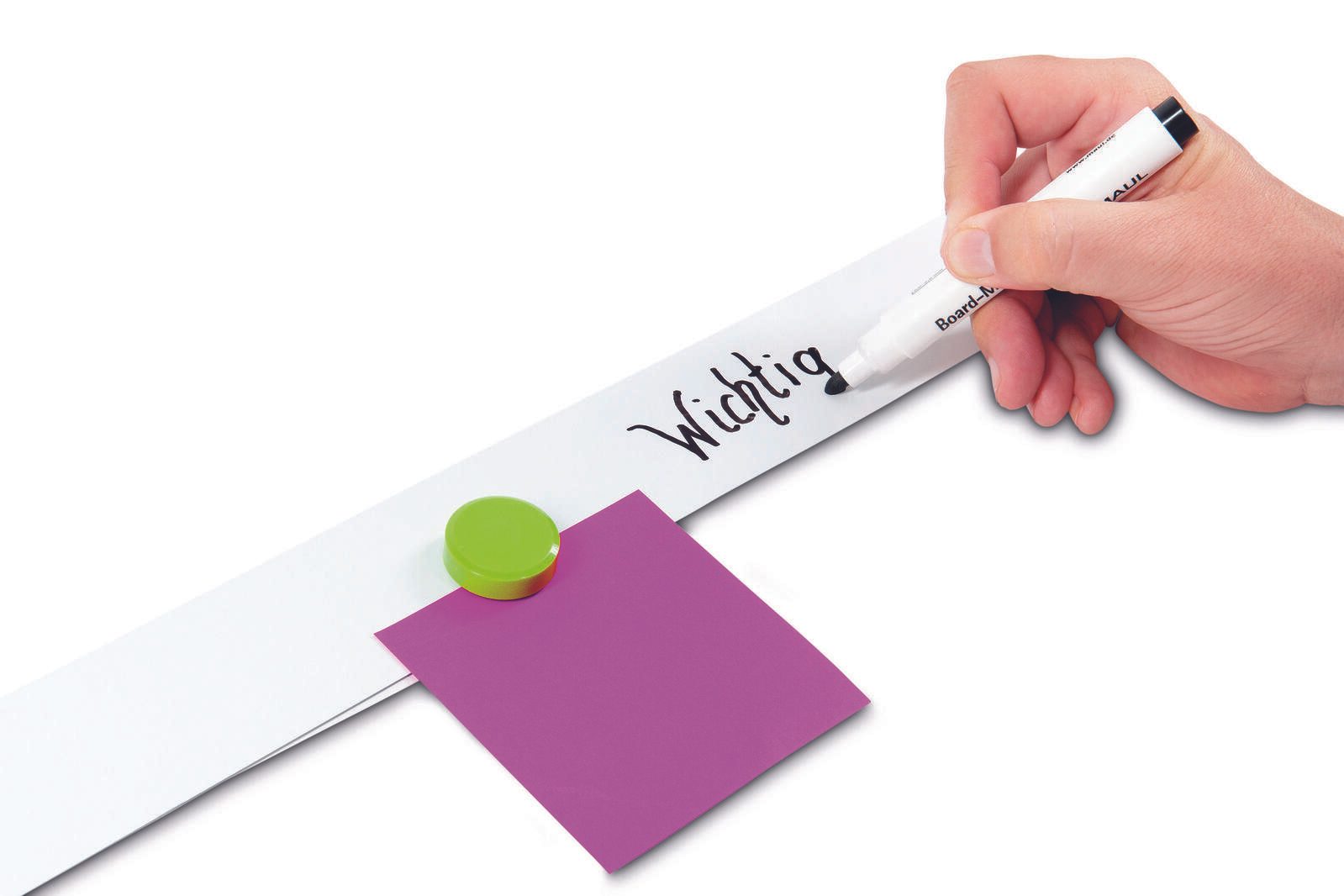 Dank der selbstklebenden Rückseite lässt sich die Magnetleiste einfach und schnell an nahezu allen glatten Oberflächen anbringen, ohne dass zusätzliche Befestigungsmaterialien benötigt werden. So können Sie flexibel und individuell Ihren Arbeitsplatz oder andere Bereiche gestalten. Die Magnetleiste ist speziell für die MAULstandard Serie konzipiert und bietet eine optimale Ergänzung zu weiteren Produkten dieser Serie.