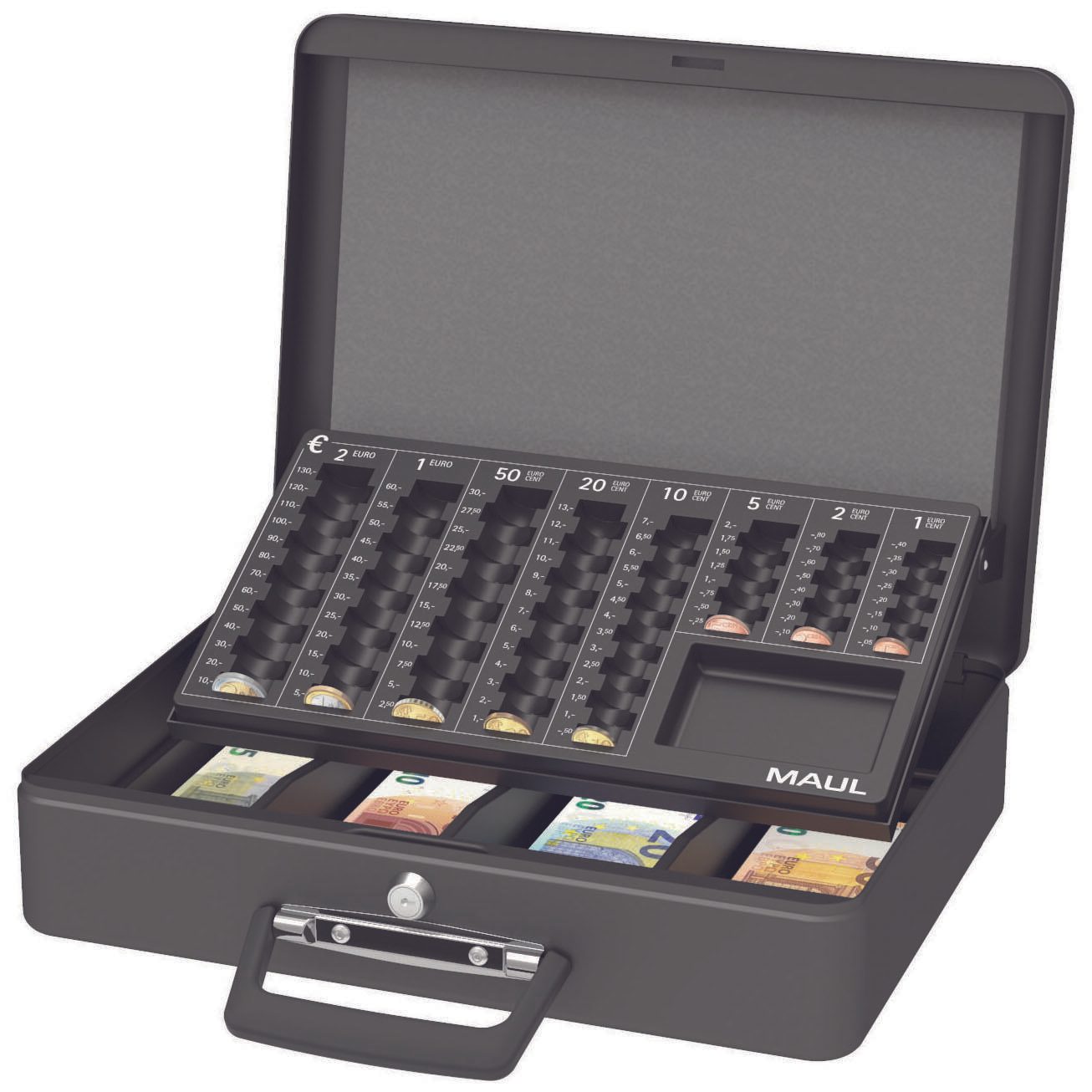 Die MAUL Geldkassette 5631690 in Schwarz kombiniert Sicherheit und Funktionalität für deine Wertsachen. Mit einem Hartgeldeinsatz, der sich automatisch nach hinten bewegt, sobald die Kassenlade geöffnet wird, bietet diese Geldkassette eine benutzerfreundliche Lösung für deine Bargeldverwaltung.