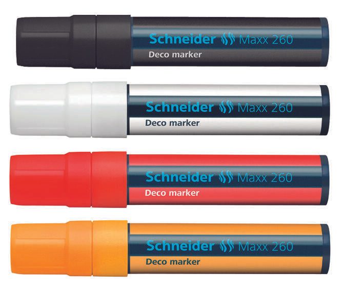 Ein besonderes Merkmal des Schneider Kreidemarkers Maxx 260 ist seine Vielseitigkeit. Während er auf glatten Oberflächen wie Glas oder Metall hervorragend haftet und sich mühelos entfernen lässt, ist er auf rauen Oberflächen wie Karton dauerhaft und beständig.