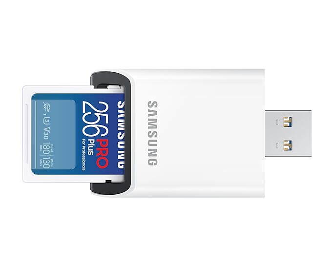 Samsung PRO Plus MB-SD256SB Speicherkarte 256 GB mit USB Kartenleser SDXC-Karte , UHS-I , Class 3 (U3) , Weiß