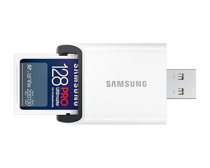 Samsung PRO Ultimate MB-SY128SB Speicherkarte 128 GB mit USB Kartenleser SDXC-Karte , UHS-I , Class 3 (U3) , Weiß