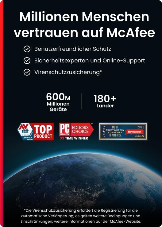 - Schützen Sie Ihre Geräte mit dem preisgekrönten McAfee-Virenschutz vor den neuesten Bedrohungen.