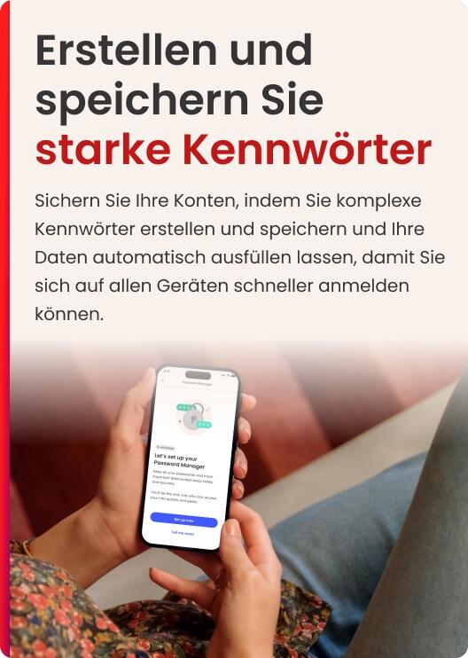 - Generieren und speichern Sie starke Kennwörter mit unserem benutzerfreundlichen Kennwort-Manager.
