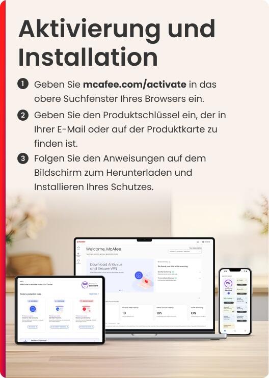 - Schützen Sie Ihr digitales Leben mit McAfee Total Protection. Schützen Sie sich mit preisgekröntem Virenschutz, KI-gestützter Betrugserkennung in SMS, Identitätsüberwachung und VPN.