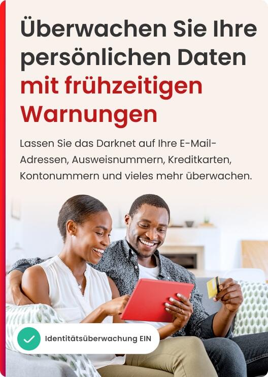 - Übernehmen Sie die Kontrolle über Ihre digitale Identität mit unserem Identitätsüberwachungsdienst, der Sie frühzeitig warnt und Ihnen hilft, Ihre persönlichen Daten zu schützen.