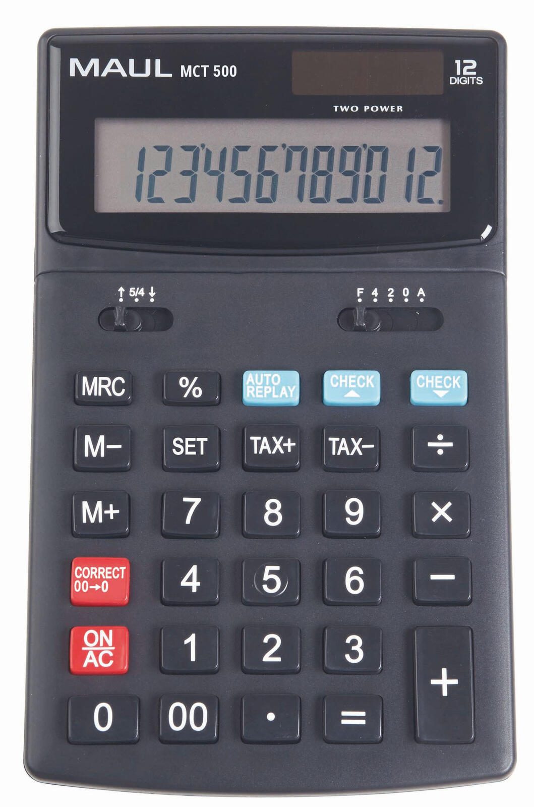 Ein herausragendes Merkmal des MCT500 ist sein angewinkeltes Display, das eine ergonomische Nutzung ermöglicht. Dadurch wird das Ablesen der Ergebnisse erleichtert und die Belastung der Augen verringert. Zusätzlich verfügt der Rechner über eine praktische Check & Correct-Funktion, die Ihnen hilft, Eingabefehler schnell zu korrigieren und somit Zeit zu sparen.