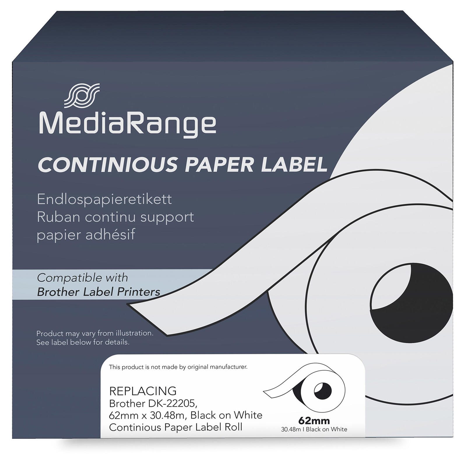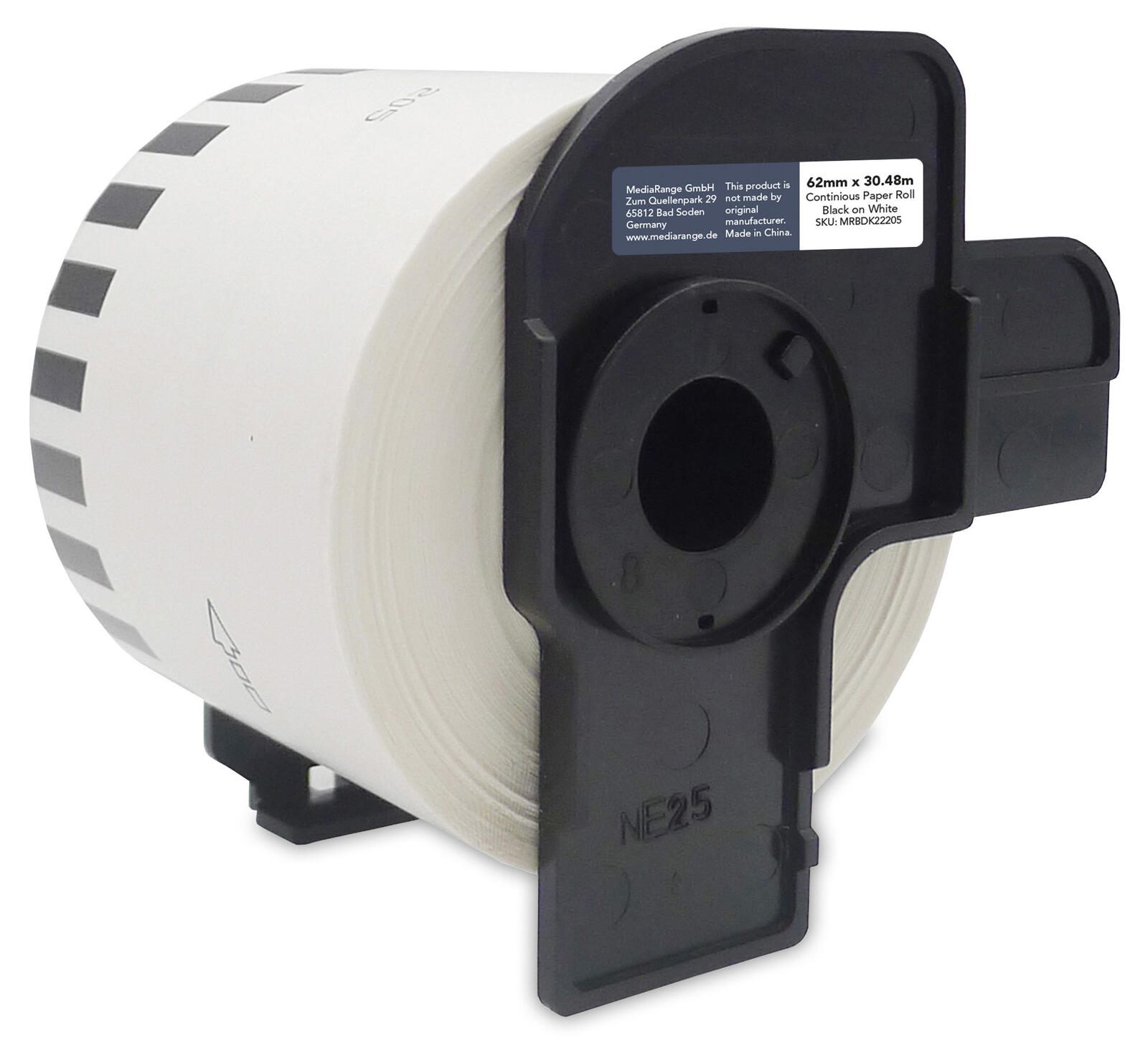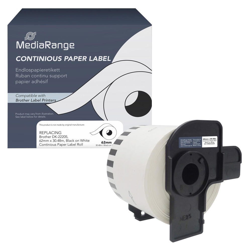 MediaRange Endlospapierrolle für Etikettendrucker ersetzt brother DK-22205 weiß, 62,0 mm, 1 x 1 Etiketten