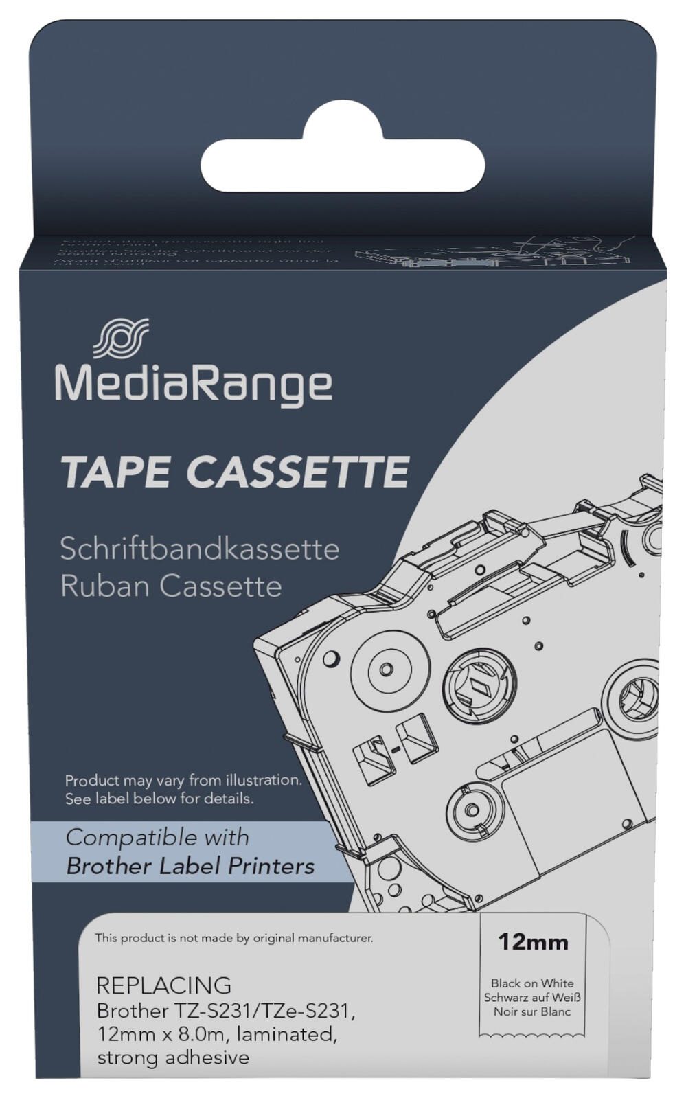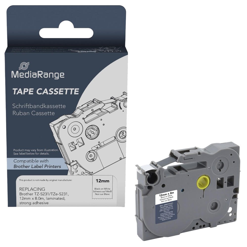 MediaRange Schriftband MRBTZS231 ersetzt brother TZ-S231/TZe-S231 , 12 mm, schwarz auf weiß, 1 St.