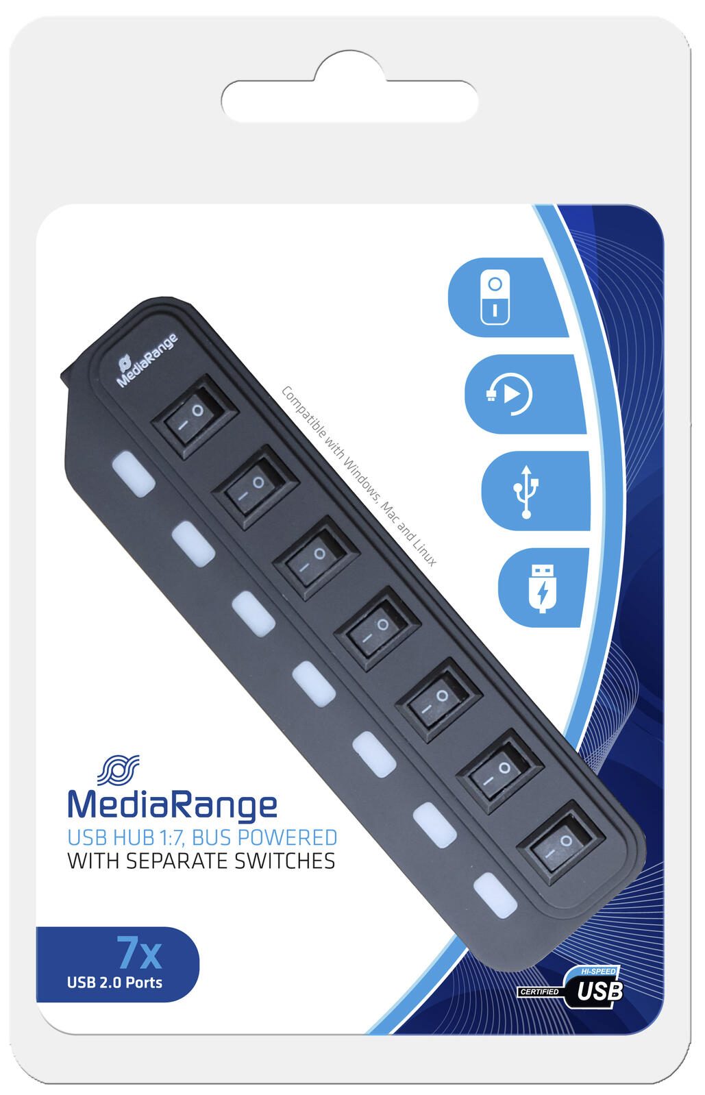 MediaRange MRCS504 - Hub - 7 Anschlüsse