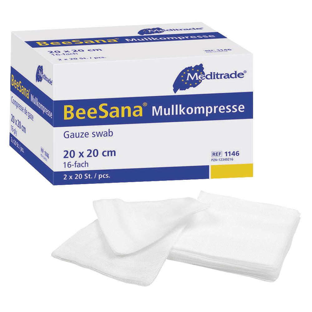 Meditrade® BeeSana®mit eingeschlagenen Schnittkanten Mull-Kompressen 20 cm x 20 cm 1 Pack = 20x 2 St.