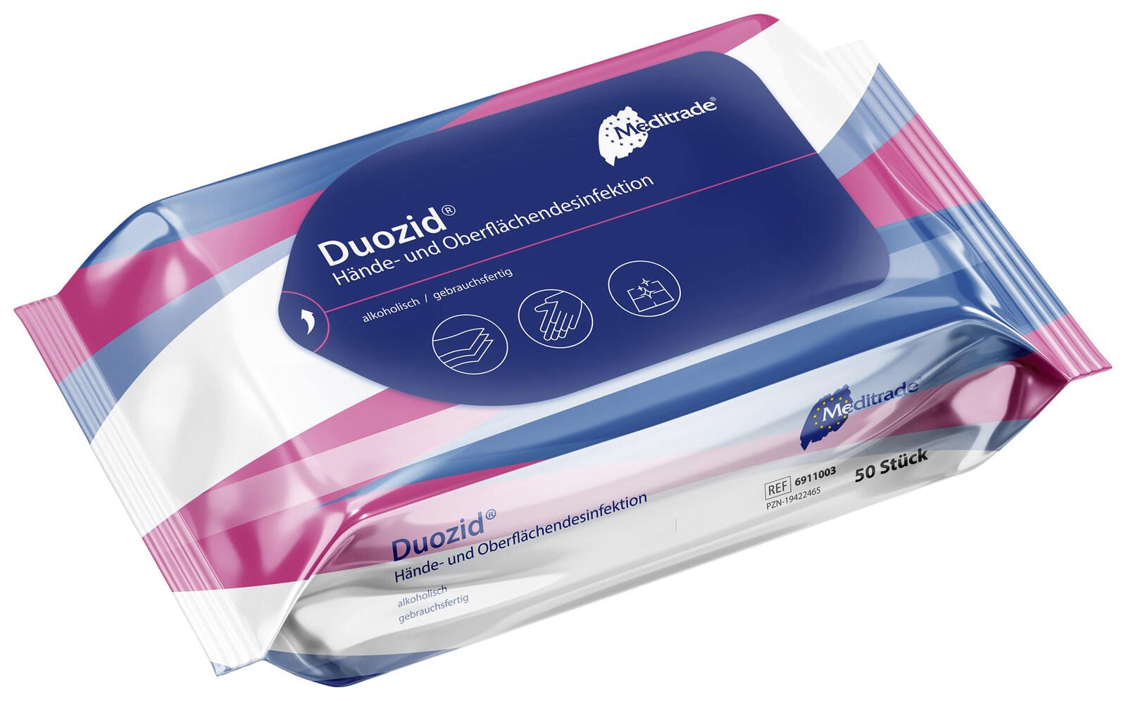 Hergestellt werden die Desinfektionstücher von der Meditrade GmbH mit Sitz in Kiefersfelden, Deutschland. Das Produkt gehört zur Serie Duozid® und ist als Allzweck- und Kosmetiktuch klassifiziert. Die einfache Handhabung und die Wiederverschließbarkeit bieten eine komfortable Nutzung im Alltag.