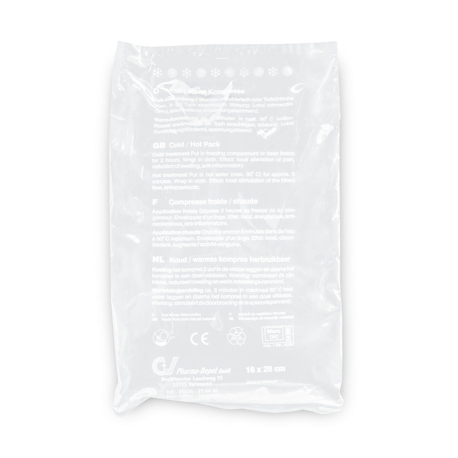 Hergestellt wird das Kühlpad von der Meditrade GmbH mit Sitz in Kiefersfelden, Deutschland. Das Produkt zeichnet sich durch seine klare, transparente Optik und das praktische Format aus, das eine vielseitige Nutzung ermöglicht.