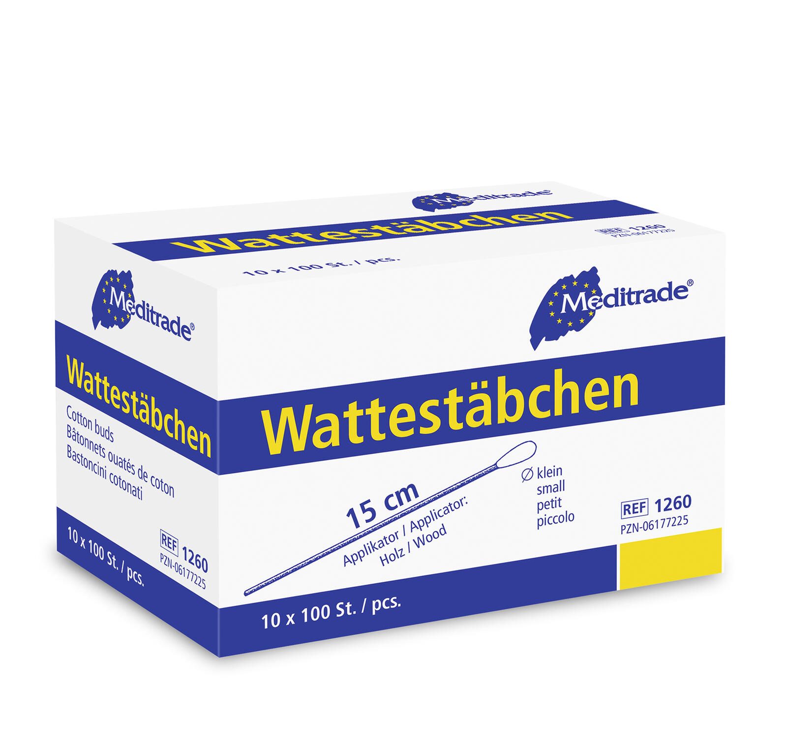 Meditrade® Wattestäbchen 15cm klein Holz 1.000 St.