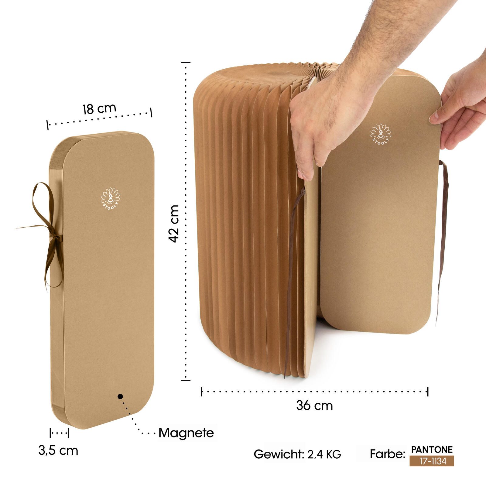 - Faltbarer Hocker aus stabilem Wabenkarton