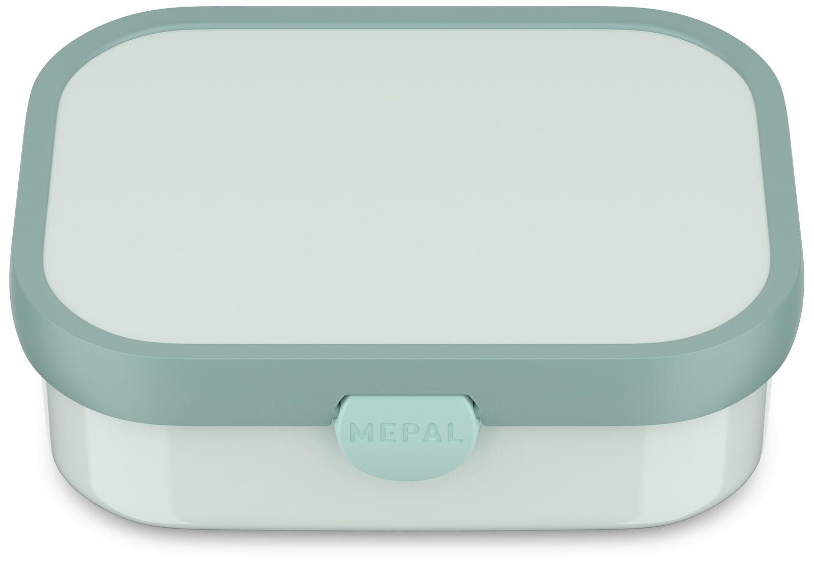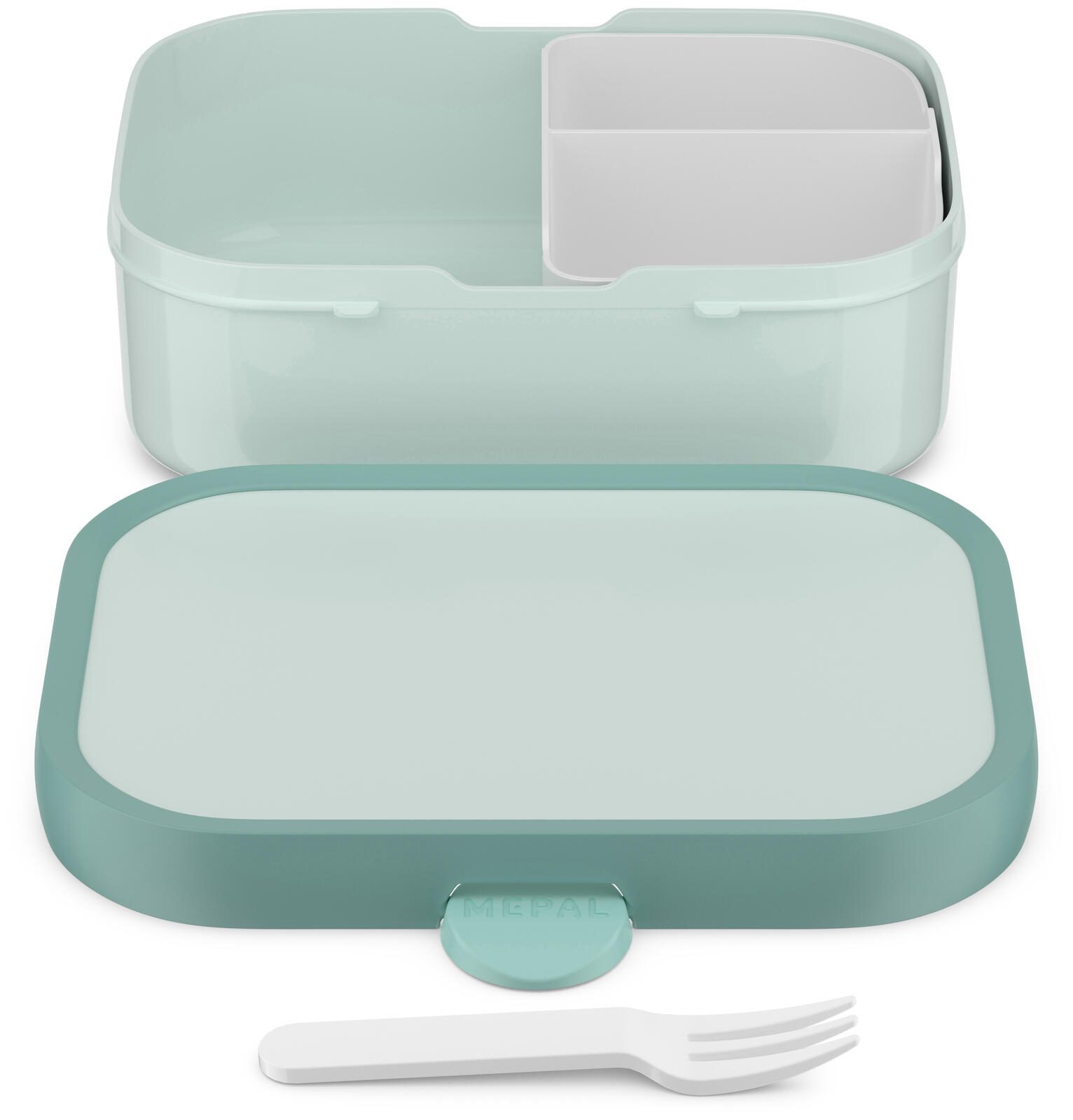 Die MEPAL Lunchbox Campus in der trendigen Farbe cool mint ist die ideale Lösung für alle, die Wert auf eine praktische und stilvolle Aufbewahrung ihrer Mahlzeiten legen. Bestehend aus einer Brotdose, einem Bento-Einsatz und einer Snackgabel, bietet sie vielfältige Möglichkeiten, Speisen getrennt und frisch zu halten. Mit einer kompakten Höhe von 6,1 cm, einer Breite von 13,2 cm und einer Tiefe von 17,8 cm passt die Lunchbox problemlos in jede Tasche und ist somit perfekt für Schule, Arbeit oder unterwegs.