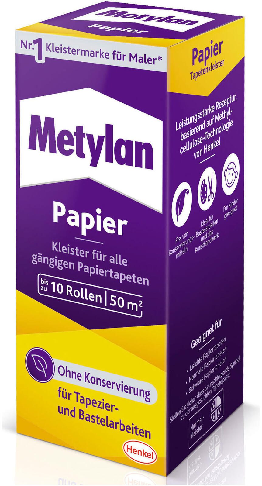 Der Metylan Tapetenkleister in der praktischen 125,0 g Verpackung ist die ideale Lösung für alle, die ihre Wände mit Papiertapeten verschönern möchten. Dieser hochwertige Kleister zeichnet sich durch seine haftklebenden Eigenschaften aus, die ein sicheres und zuverlässiges Anbringen der Tapeten gewährleisten. Mit seiner matten Farbe fügt sich der Kleister harmonisch in jedes Raumkonzept ein und sorgt dafür, dass die Tapeten perfekt zur Geltung kommen. Die Anwendung des Metylan Tapetenkleisters ist unkompliziert und benutzerfreundlich. Er trocknet transparent, was bedeutet, dass eventuelle Kleisterreste nach dem Trocknen unsichtbar bleiben. Dies ist besonders vorteilhaft, wenn du beim Tapezieren sorgfältig arbeiten möchtest. Der Kleister ist speziell für alle Papiertapeten geeignet, sodass du eine breite Auswahl an Designs und Mustern nutzen kannst, um deinen Wohnraum individuell zu gestalten. Die Verpackung aus Karton sorgt nicht nur für eine umweltfreundliche Lösung, sondern ermöglicht auch eine einfache Handhabung und Lagerung. Mit einem Inhalt von 125,0 g hast du genügend Material zur Verfügung, um dein Tapezierprojekt erfolgreich umzusetzen. Metylan, als renommierter Hersteller, steht für Qualität und Zuverlässigkeit in der Welt der Tapetenkleister und bietet dir somit die Sicherheit, dass du ein Produkt erhältst, das deinen Anforderungen gerecht wird. Entscheide dich für den Metylan Tapetenkleister und erlebe, wie einfach und effektiv das Tapezieren sein kann. Mit diesem Kleister erzielst du nicht nur ein perfektes Ergebnis, sondern schaffst auch eine angenehme Atmosphäre in deinem Zuhause.Technische Daten