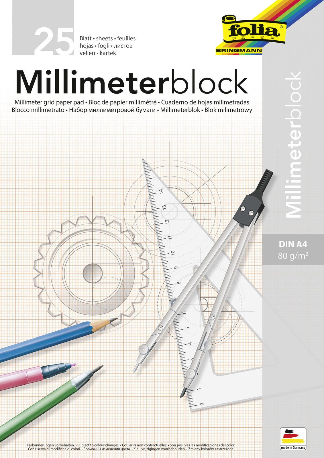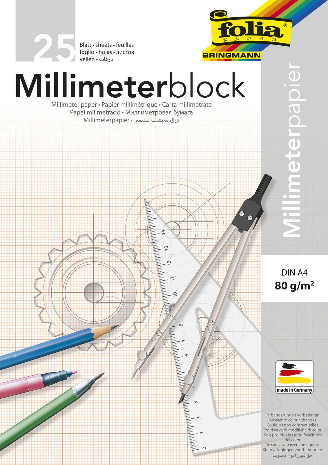 Der Millimeter-Block A4 25bl.80g von folia ist ein unverzichtbares Tool für präzise Messungen und technische Zeichnungen. Dieser Millimeterblock, ohne Rand, enthält 25 Blatt hochwertiges Papier mit einem Gewicht von 80 g/m². Dank seiner flexiblen Bindung kannst du bequem auf jeder Oberfläche arbeiten, sei es im Büro, in der Schule oder Zuhause.