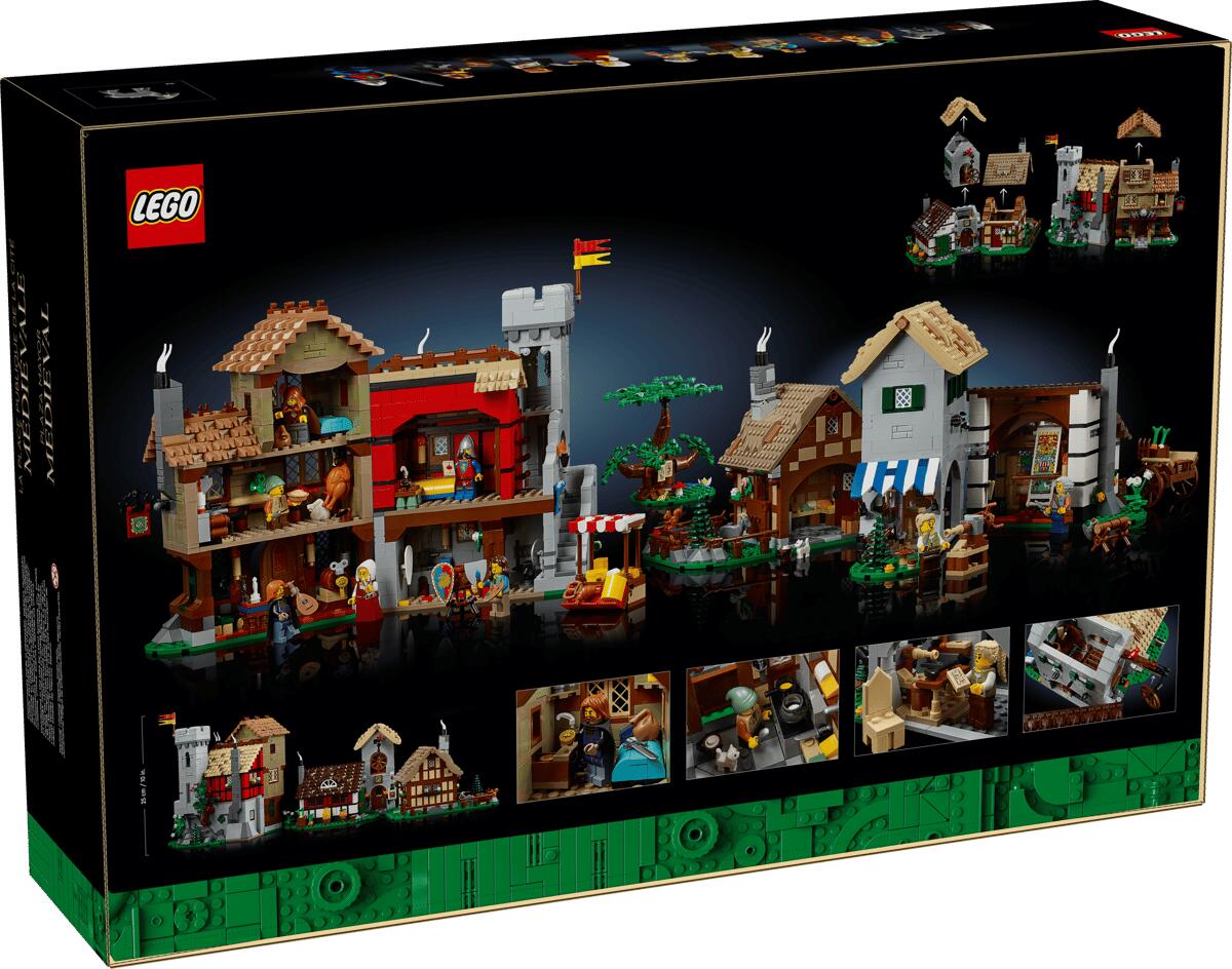 Bauset für Erwachsene: Der LEGO® Icons Mittelalterliche Marktplatz ist eine Neuinterpretation des Sets „Mittelalter Marktplatz“ aus dem Jahr 2009 und stellt das Dorf Felsa dar, das mit seinen alten Gebäuden zu vielen neuen Geschichten inspiriert