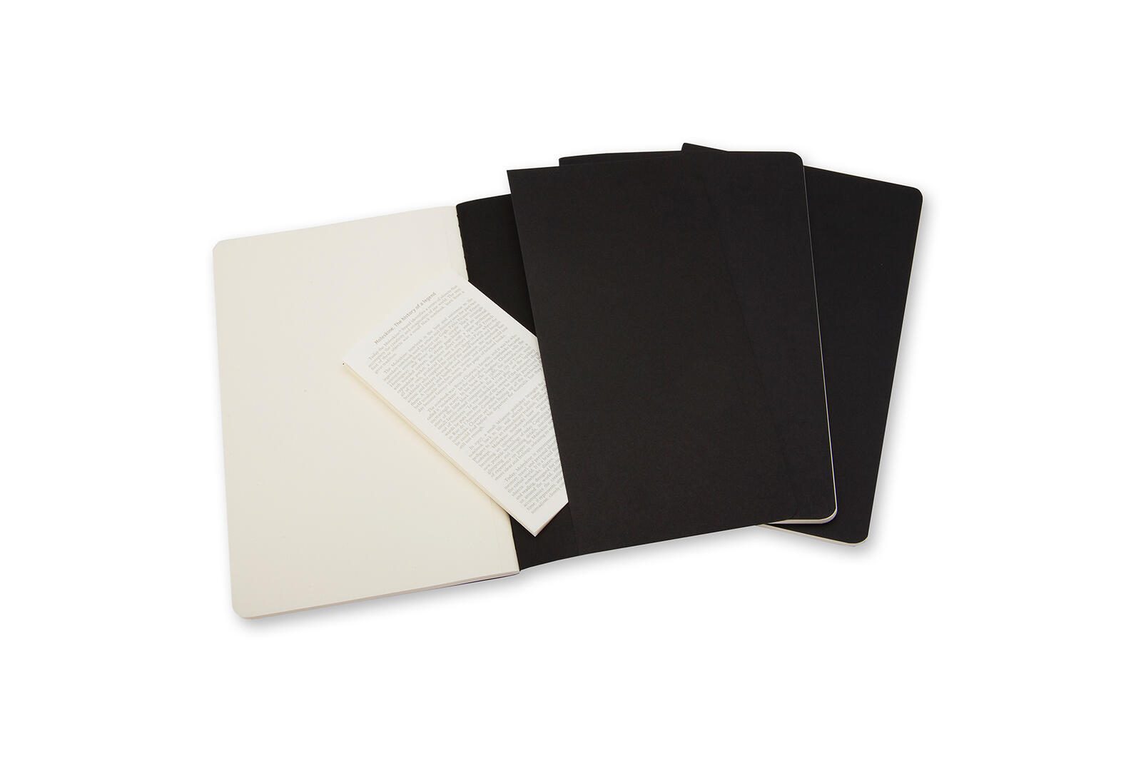 Die Notizbücher sind mit einer Fadensiegelung gebunden, was eine stabile und langlebige Heftung gewährleistet. Das Cover besteht aus Karton in schwarzer Farbe, was den Notizbüchern ein schlichtes und zugleich elegantes Aussehen verleiht. Im Lieferumfang sind drei Notizbücher enthalten, die sich ideal für den Alltag, Beruf oder das Studium eignen.