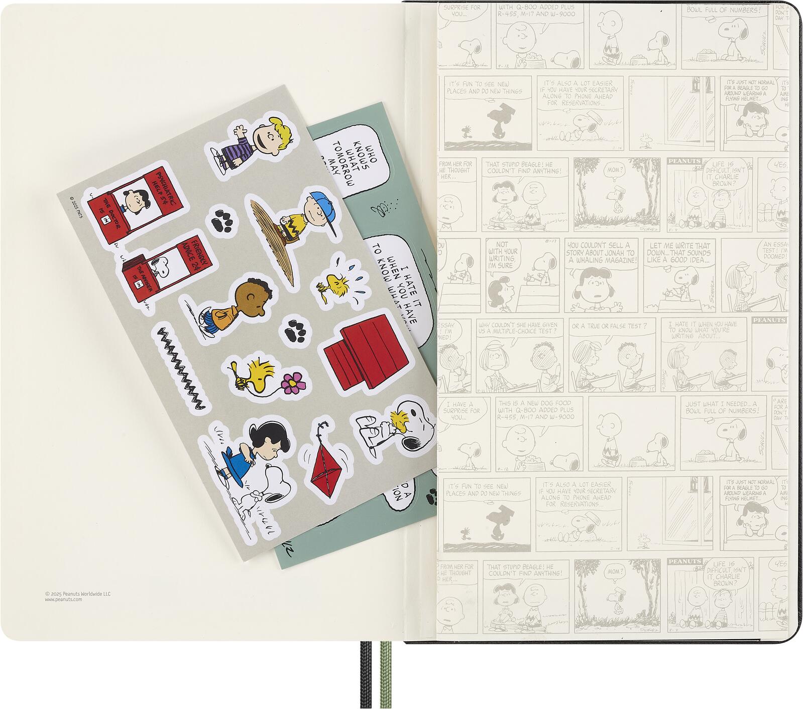 • inkl. 2x Blatt Peanuts Sticker, Individuelles Vorsatzpapier, Lesezeichen-Einlage