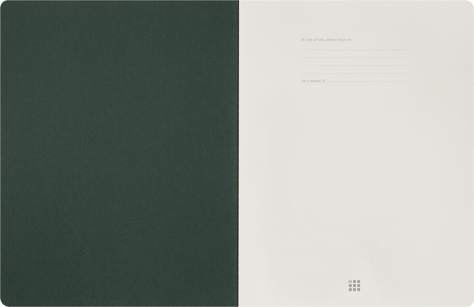 Das Notizbuch ist in einem grünen Kartonumschlag gebunden, der durch eine Fadensiegelung zusammengehalten wird. Diese Bindungsart sorgt für eine stabile Verbindung der Seiten und eine lange Haltbarkeit des Buches. Der Umschlag ist robust und verleiht dem Notizbuch eine schlichte, aber elegante Optik. Zudem ist das Papier abwischbar, was eine einfache Reinigung und Pflege möglich macht.