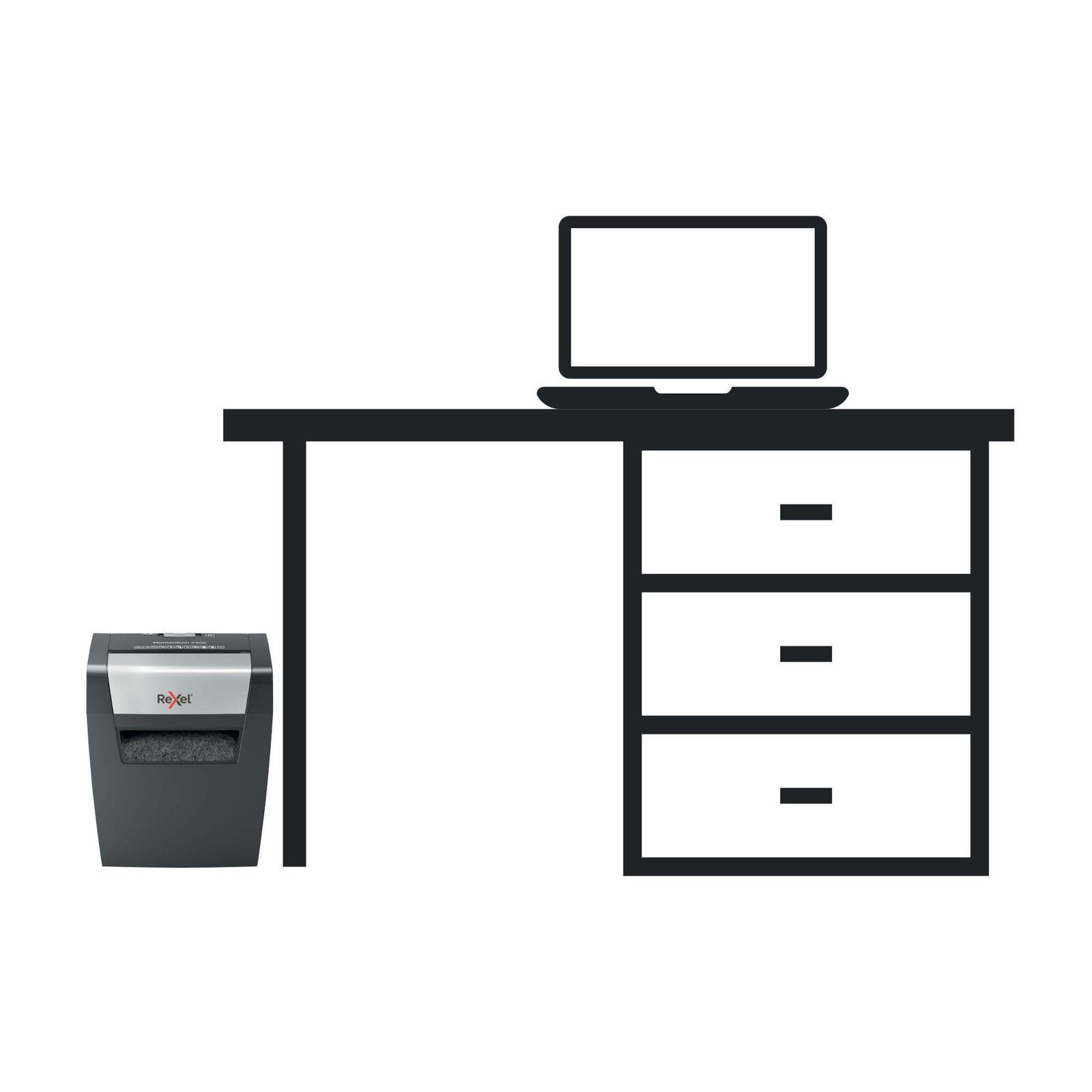 Der Rexel Aktenvernichter mit Partikelschnitt Momentum X406 bis 6 Blatt in Schwarz ist die perfekte Lösung für dein Home Office. Mit einer Sicherheitsstufe gemäß DIN 66399: P-4 sorgt er für zuverlässige Datenvernichtung und schützt deine vertraulichen Informationen.