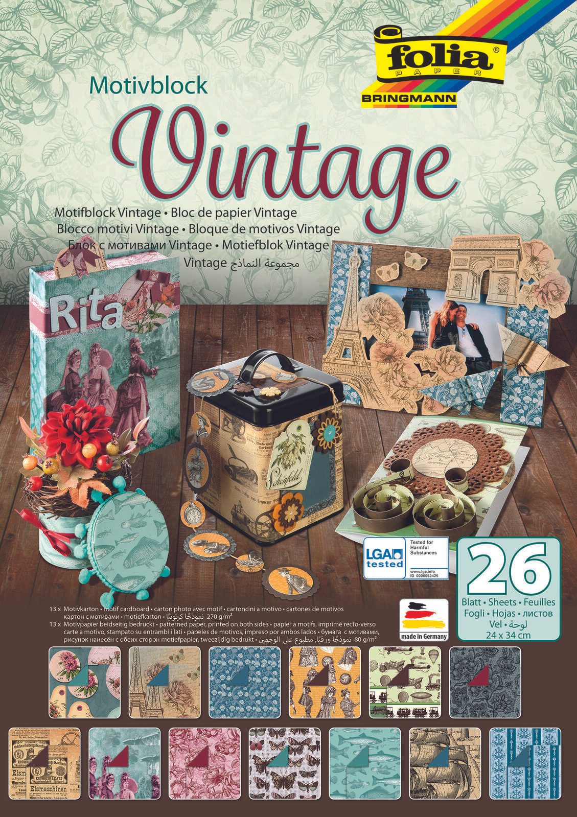 Der folia Motivblock farbsortiert ist die ideale Wahl für kreative Köpfe, die auf der Suche nach hochwertigen Materialien für ihre Bastelprojekte sind. Mit insgesamt 26 Blatt in einem ansprechenden Vintagedesign bietet dieser Motivblock eine vielfältige Auswahl an farbsortierten Papieren, die sich perfekt für Scrapbooking, Kartenbasteln oder andere kreative Anwendungen eignen. Die matte Papier-Oberfläche sorgt nicht nur für eine angenehme Haptik, sondern ermöglicht auch eine exzellente Farbwiedergabe. So kommen die einzigartigen Vintagemotive besonders gut zur Geltung und verleihen deinen Projekten einen nostalgischen Charme. Jedes Blatt ist sorgfältig gefertigt und bietet eine hervorragende Grundlage für deine individuellen Designs. Mit dem folia Motivblock kannst du deiner Kreativität freien Lauf lassen und gleichzeitig die Vorteile von hochwertigem Papier nutzen. Die herkömmliche Papier-Herstellung garantiert eine gleichbleibende Qualität, die dich bei jedem Bastelprojekt unterstützt. Egal, ob du Anfänger oder erfahrener Bastler bist, dieser Motivblock ist ein unverzichtbares Zubehör für dein kreatives Schaffen. Die farbsortierte Auswahl ermöglicht es dir, schnell und unkompliziert die passenden Farben für deine Ideen zu finden. Lass dich inspirieren und entdecke die vielfältigen Möglichkeiten, die dir dieser Motivblock bietet. Der folia Motivblock farbsortiert ist nicht nur funktional, sondern auch ein echter Blickfang in deiner Bastelsammlung.Technische Daten