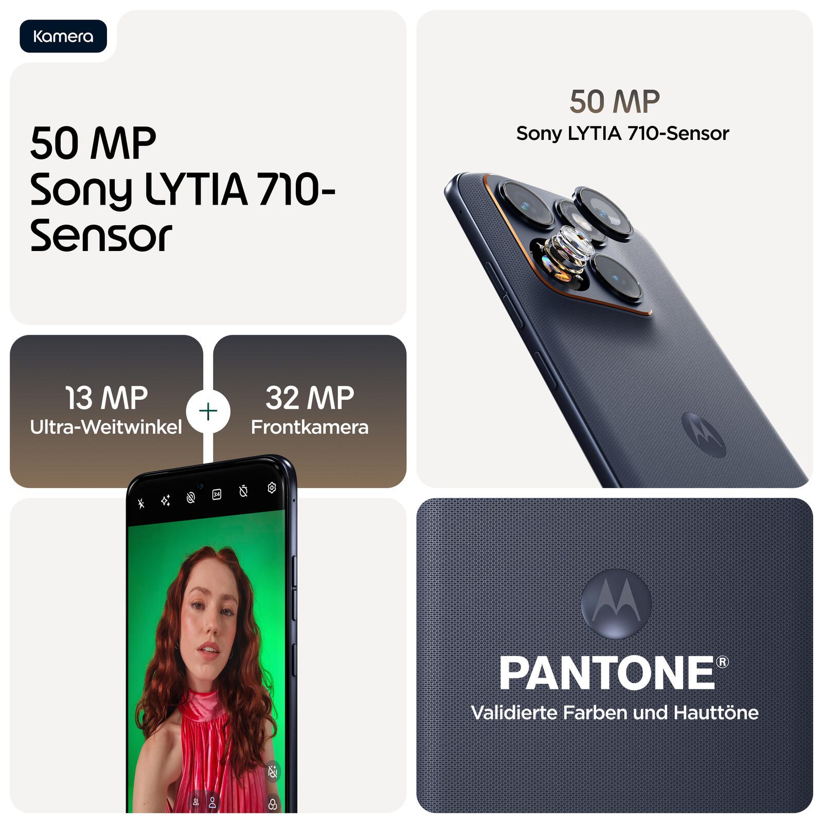 Das motorola edge 70 fusion hebt die wichtigsten Dinge auf ein ganz neues Level. Das makellose Quad-Curved-Design schafft einen eleganten, raffinierten Look und eine natürlich luxuriöse Haptik. Und trotz seines flachen, eleganten Designs ist es vollgepackt mit Funktionen. Kameras auf Profi-Niveau für jede Aufnahme, angefangen beim Sony LYTIA™ 710-Sensor. Ein intelligenterer Assistent in der Tasche, der alltägliche Aufgaben leichter macht. Und eine lange Akkulaufzeit mit blitzschneller TurboPower™-Aufladung.(2) Du gehst gerne auf Entdeckungstouren? Mit Widerstandsfähigkeit nach Militärstandard und Unterwasserschutz kannst du sorglos losziehen.(5,6) Und all das plus ein 6,78-Zoll-Super-HD-Display mit Pantone Validated™-Farben und Hauttönen(16), unschlagbare Snapdragon®-Leistung und jede Menge Speicherplatz für deine Inhalte und Kreationen. Das neue motorola edge 70 fusion ist einfach perfekt.
