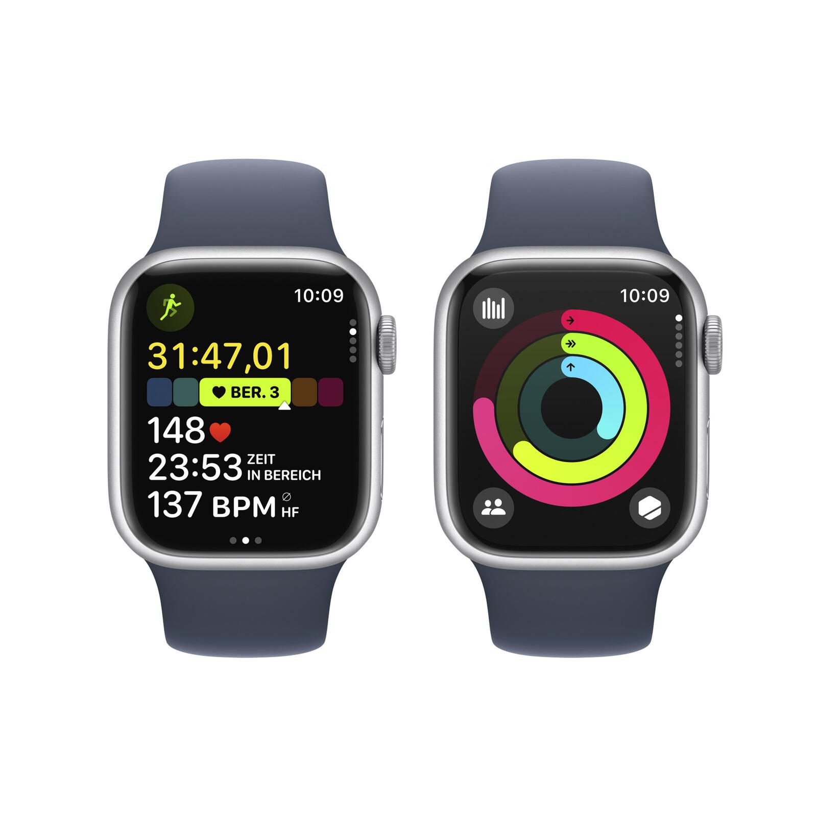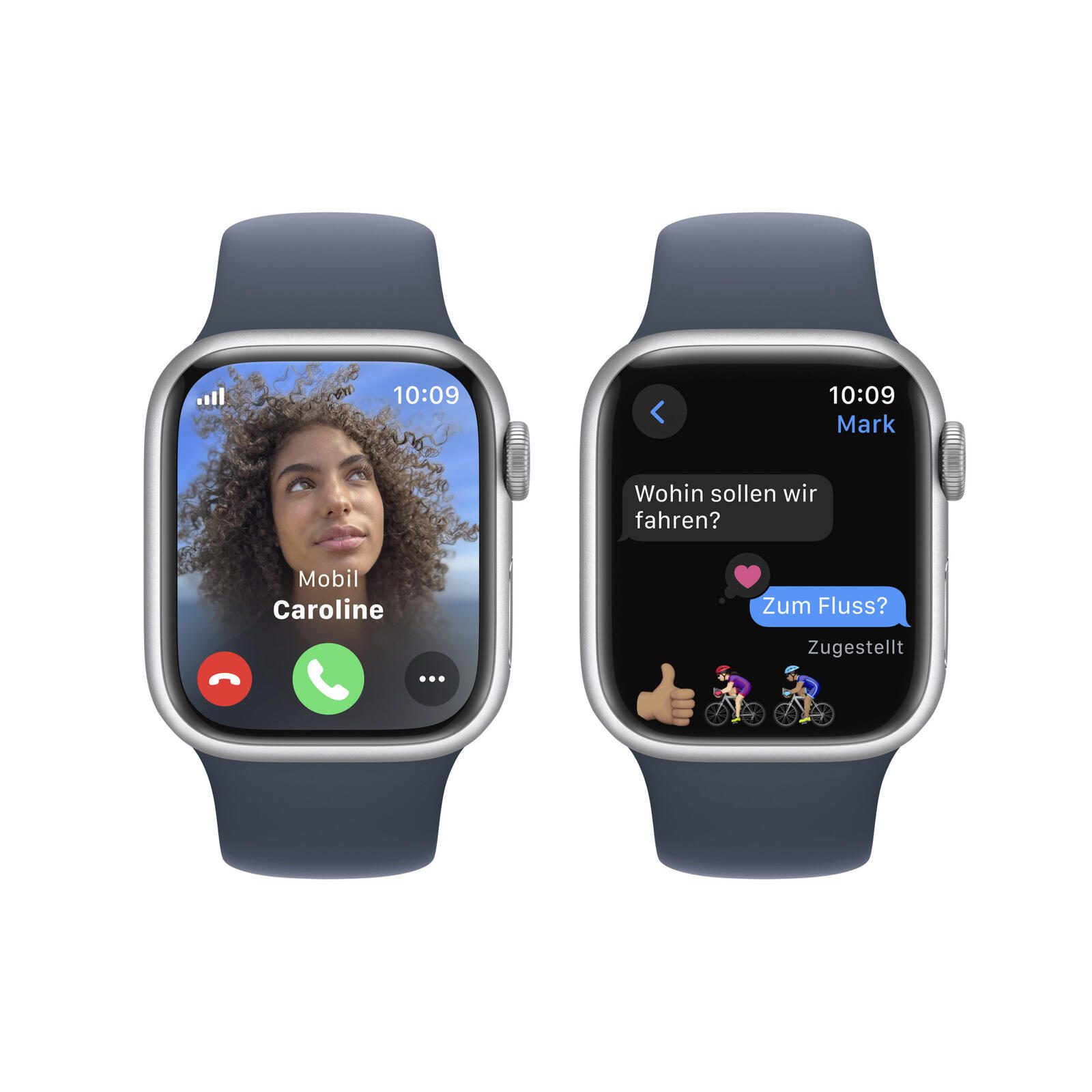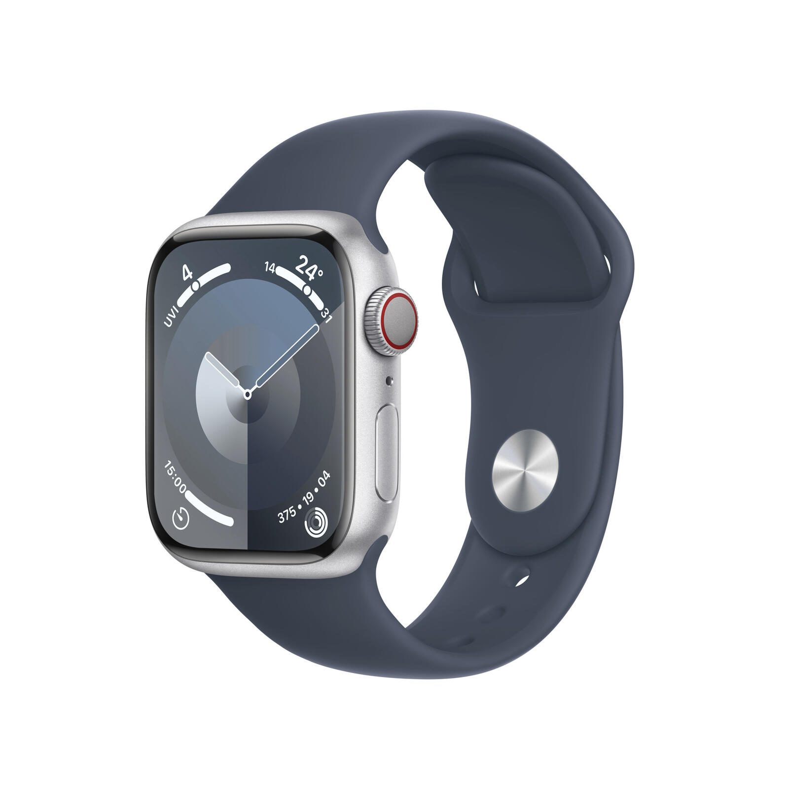 Apple Watch Series 9 (GPS + Cellular) 41mm Aluminiumgehäuse silber, Sportband sturmblau S/M