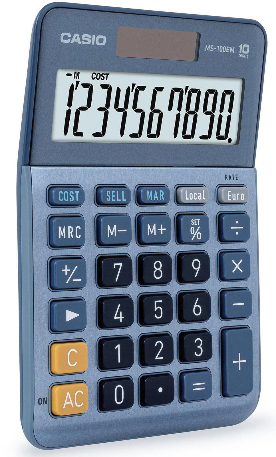 Der CASIO Tischrechner MS-100EM in einem ansprechenden blauen Design vereint Funktionalität und Eleganz in einem kompakten Gerät. Dieser Tischrechner ist ideal für den täglichen Einsatz, sei es im Büro, im Studium oder zu Hause. Mit seinen vielseitigen Funktionen, wie der Währungsumrechnung, der Abschaltautomatik sowie der Berechnung von Gewinn-, Kosten- und Handelsspannen, bietet er Ihnen alles, was Sie für präzise Berechnungen benötigen.