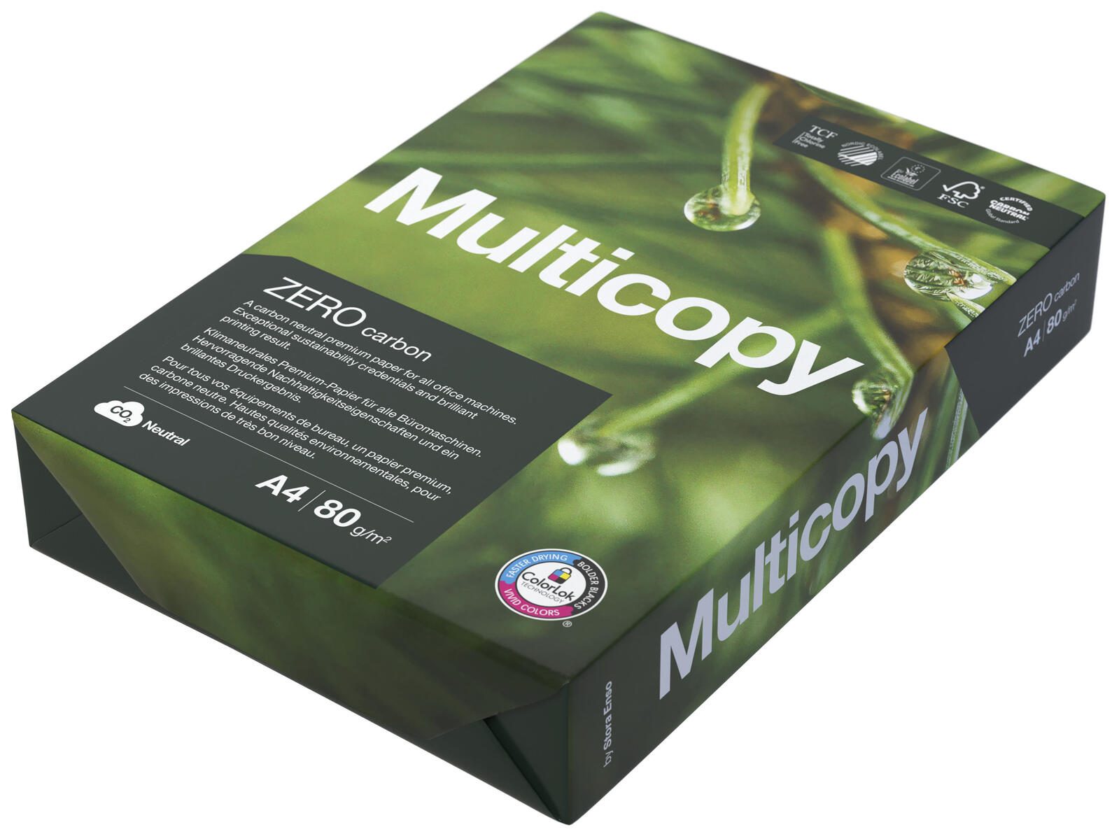 Ein besonderes Highlight des Multicopy Kopierpapiers ist die umweltschonende Herstellung. Das Papier ist nicht nur holzfrei, sondern auch total chlorfrei gebleicht (TCF), was es zu einer verantwortungsvollen Wahl für umweltbewusste Verbraucher macht. Zudem ist es als „Zero CO2 neutral“ zertifiziert, was bedeutet, dass die Herstellung des Papiers keine zusätzlichen CO2-Emissionen verursacht. Dies trägt dazu bei, die Umweltbelastung zu reduzieren und einen nachhaltigen Beitrag zu leisten.
