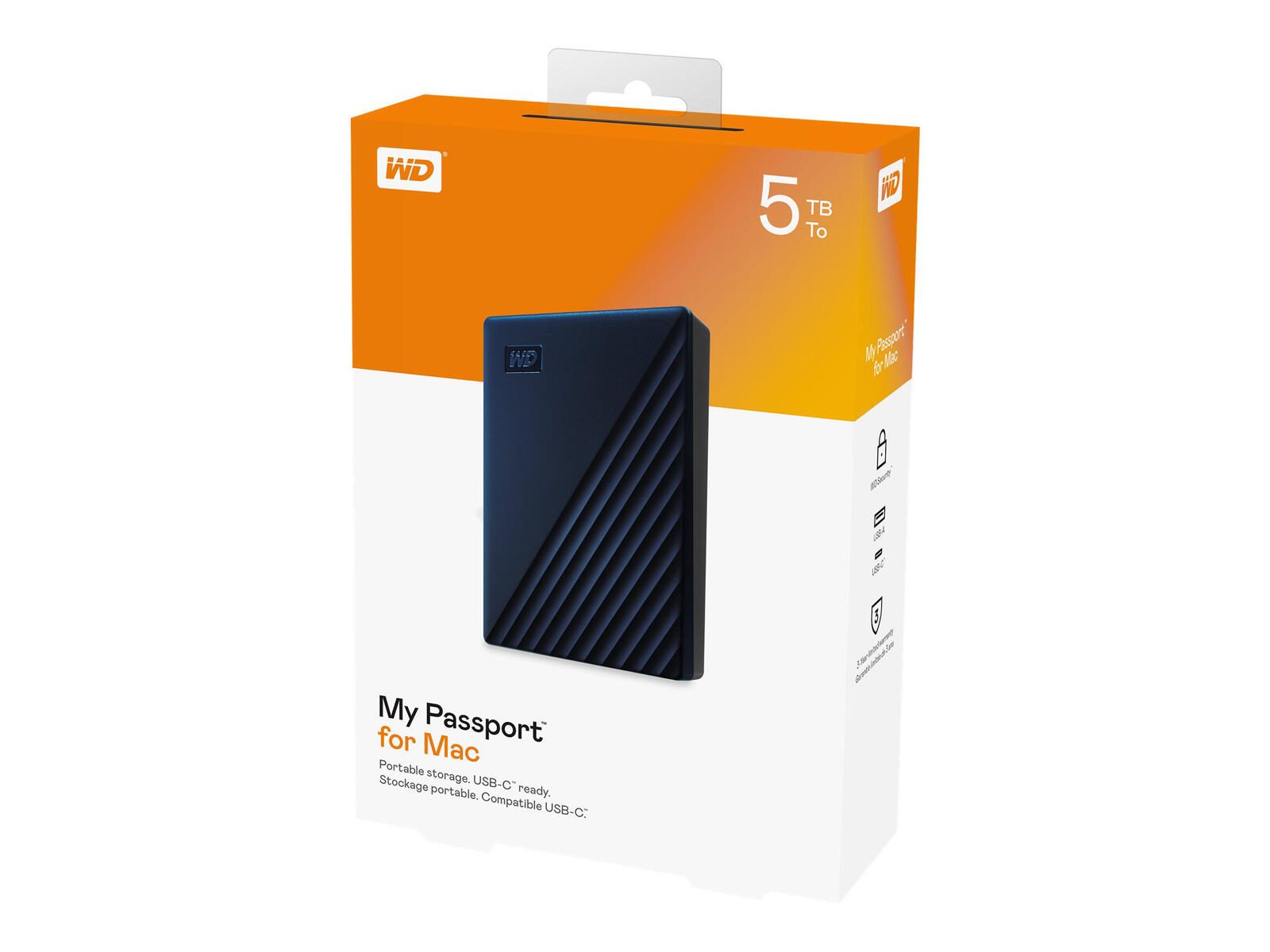 Die mobile Festplatte My Passport for Mac ist sofort nach dem Auspacken einsatzbereit und lässt sich dank USB-C™-Kompatibilität universell anschließen. Damit die Festplatte auch ohne Neuformatierung problemlos mit Computern unter Windows® 10+ funktioniert, ist ein HFS+-Treiber zum Herunterladen verfügbar.