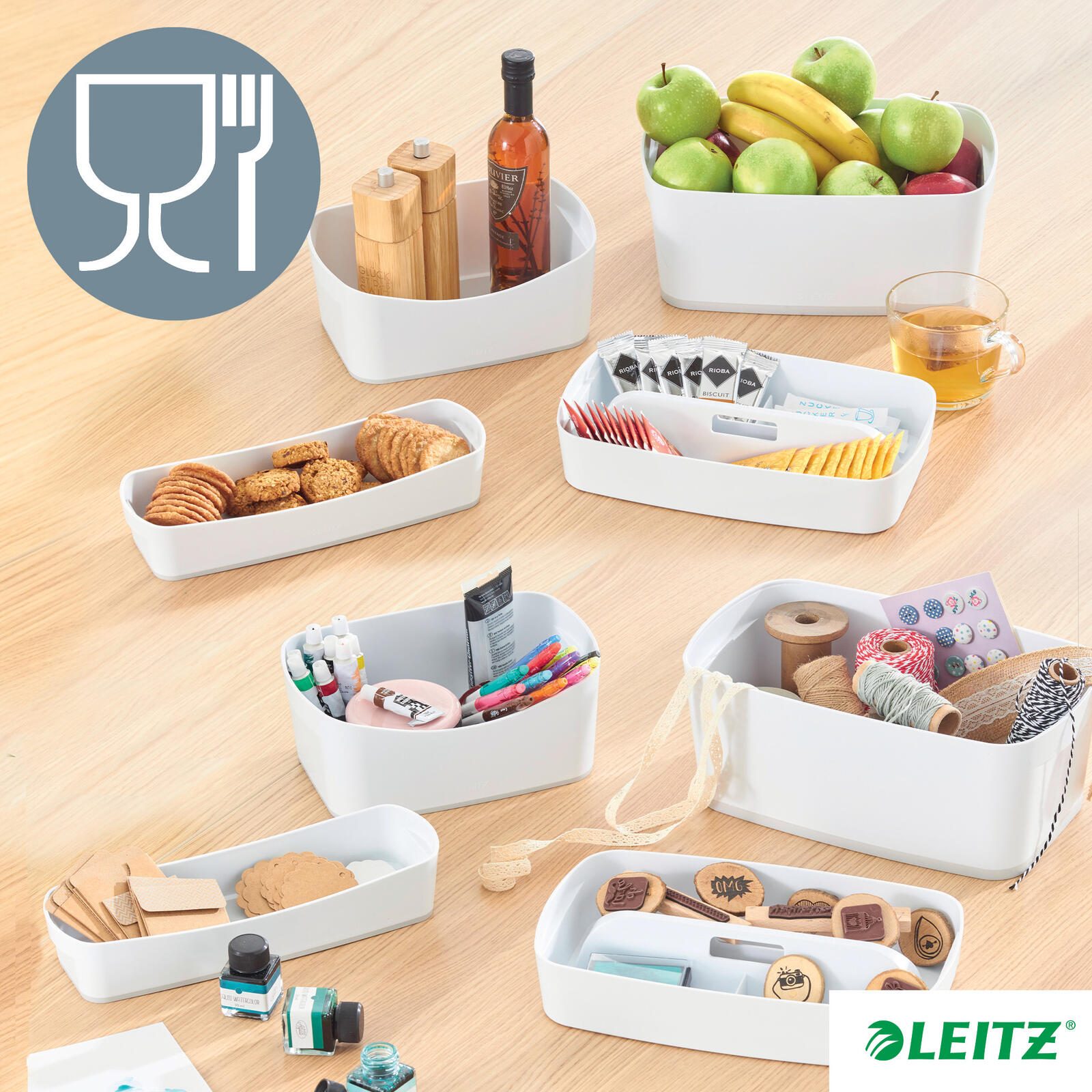 Die LEITZ Aufbewahrungsbox mit einem Fassungsvermögen von 3,0 Litern bietet eine praktische Lösung für die Aufbewahrung von Büro- und Haushaltsutensilien. Mit Außenmaßen von 24,6 x 16,0 x 9,8 cm passt sie ideal in Regale, Schubladen oder auf den Schreibtisch. Ihr elegantes Design in perlweiß und grau fügt sich harmonisch in jede Umgebung ein und sorgt für eine aufgeräumte Optik. Hergestellt aus hochwertigem ABS-Kunststoff, ist die LEITZ Aufbewahrungsbox robust und langlebig. Sie ist zwar nicht lebensmittelecht, eignet sich jedoch hervorragend zur Aufbewahrung von Büromaterialien oder anderen Alltagsgegenständen. Dank ihrer praktischen Form ist die Box ineinander stapelbar, was dir ermöglicht, den verfügbaren Platz optimal zu nutzen und Ordnung zu schaffen. Die Box verfügt über keinen Deckel, was einen schnellen Zugriff auf deine Utensilien gewährleistet. Die einfache Handhabung und das schlichte Design machen die LEITZ Aufbewahrungsbox zu einem unverzichtbaren Begleiter für alle, die Wert auf Funktionalität und Stil legen. Ob im Homeoffice, im Kinderzimmer oder im Arbeitsbereich – diese Aufbewahrungsbox hilft dir, deine Dinge stets griffbereit zu haben und gleichzeitig für eine ansprechende Ordnung zu sorgen. Mit der LEITZ Aufbewahrungsbox triffst du die richtige Wahl, um deine Utensilien sicher und übersichtlich aufzubewahren.Technische Daten