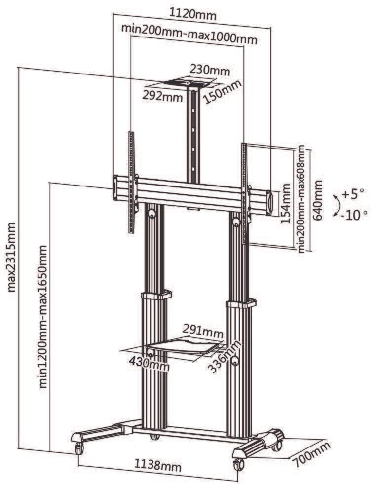 MyWall HP 102 Rollwagen für Displays 60-100 Zoll (152 - 254cm)