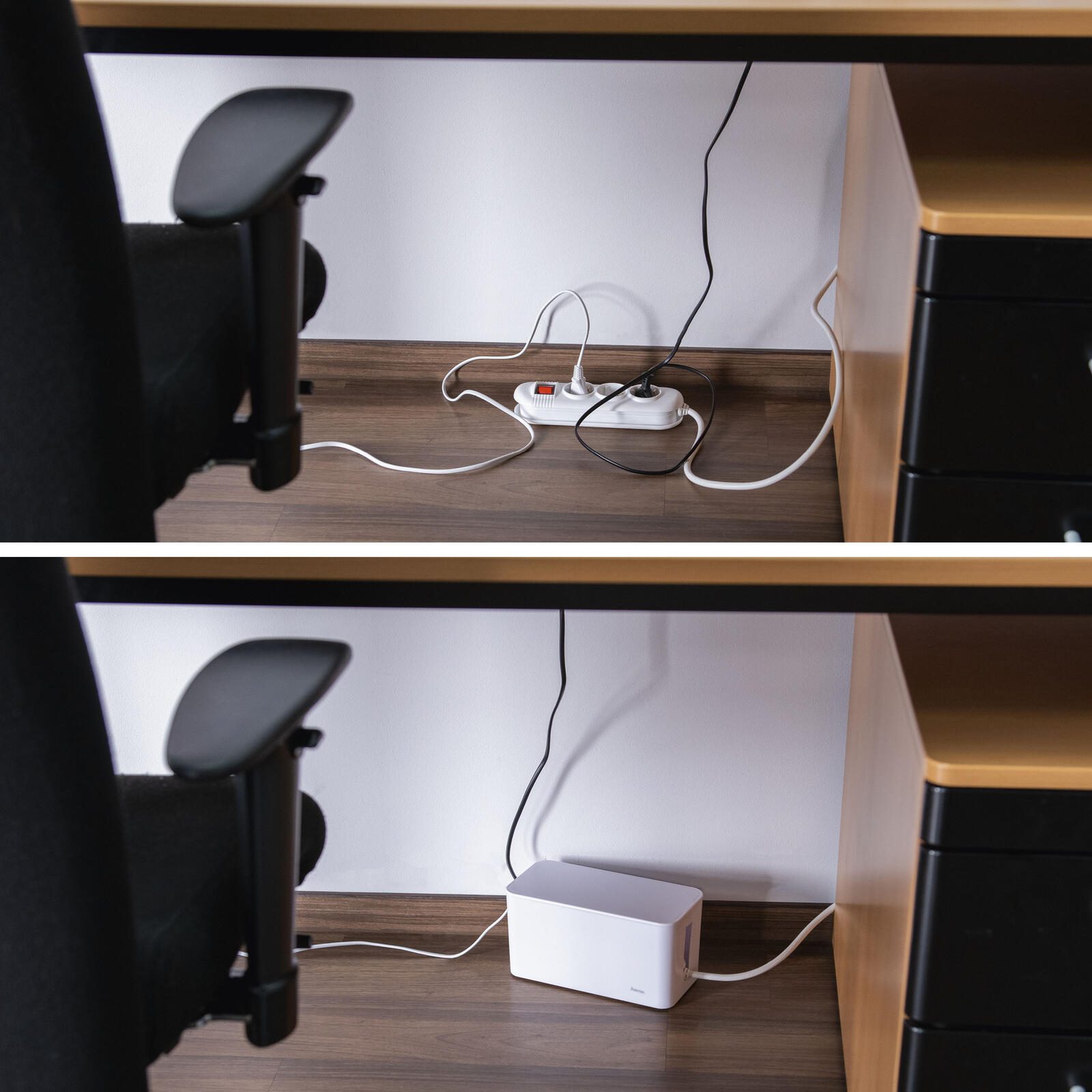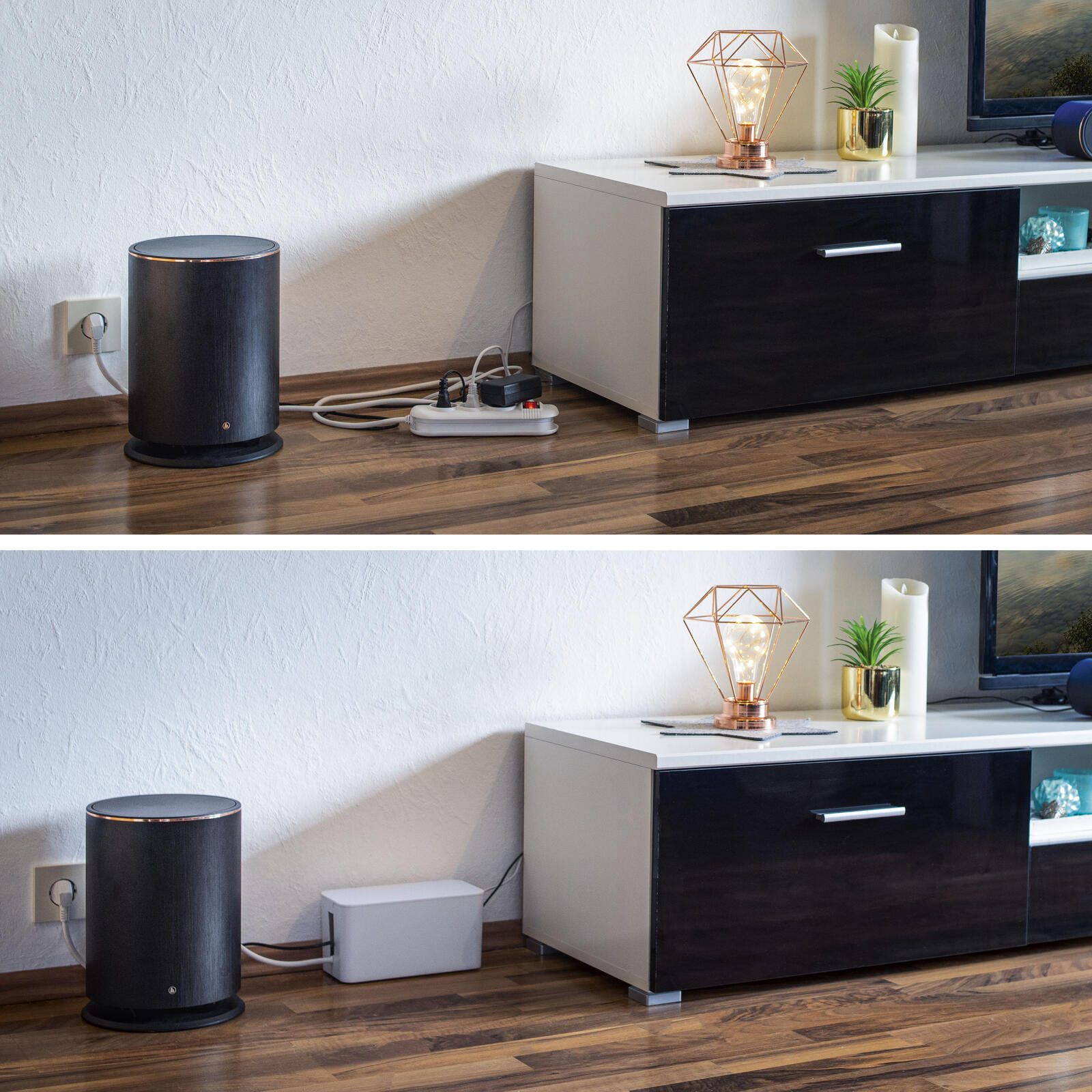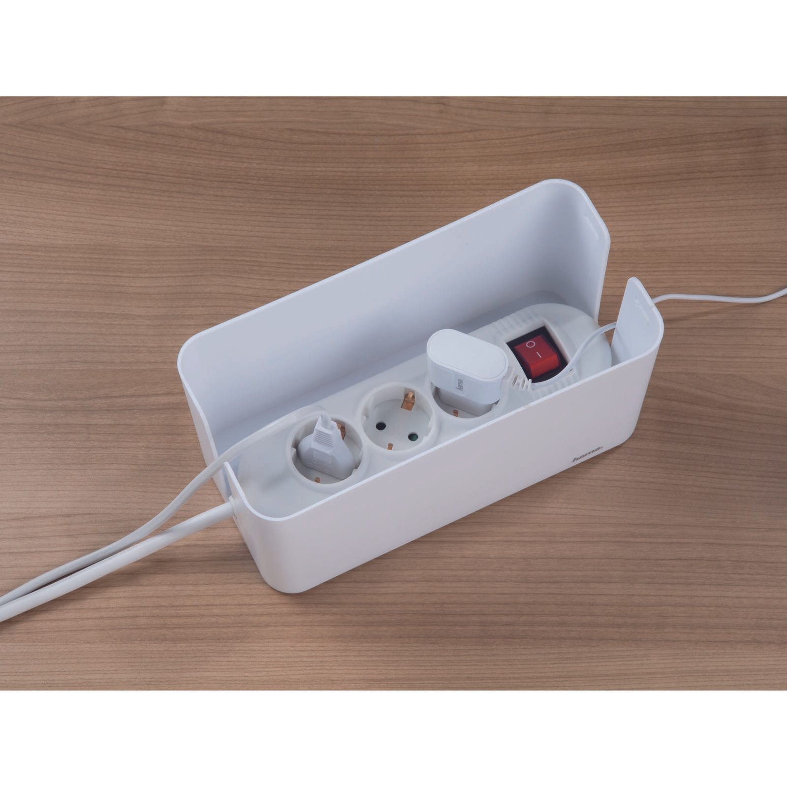 Die Kabelbox eignet sich ideal für zu Hause, im Büro oder überall dort, wo Kabel gebraucht, aber nicht ständig sichtbar sein sollen. Durch die weiße Farbe passt sie zu jeder Einrichtung und kann unauffällig platziert werden. Die kompakte Größe der Kabelbox macht sie zudem platzsparend und praktisch in der Anwendung.