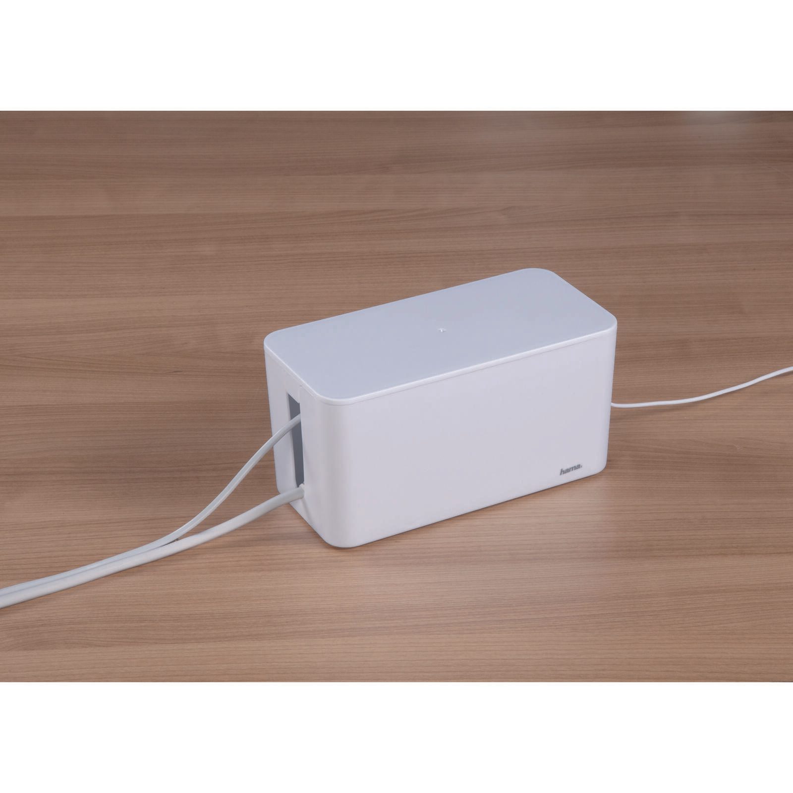 Mit der hama Kabelbox Mini in Weiß gehören lästige Kabelsalate der Vergangenheit an. Das schlichte Design fügt sich harmonisch in jeden Raum ein und verleiht deiner Umgebung ein aufgeräumtes Erscheinungsbild. Dank der hochwertigen Materialart Kunststoff ist die Kabelbox langlebig und leicht zu reinigen.