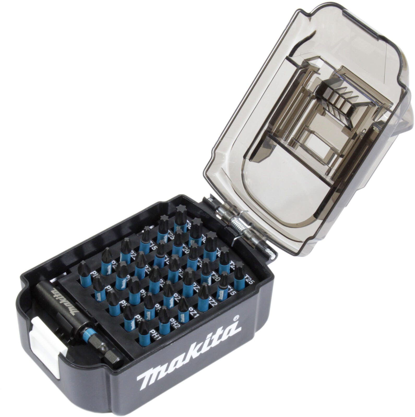 Ein Highlight dieses Sets sind die präzisionsgefertigten Spitzen, die einen perfekten Halt gewährleisten. Beim Betätigen des Druckknopfes öffnet sich der Deckel der Box automatisch, was einen bequemen Zugriff auf die Bits ermöglicht.