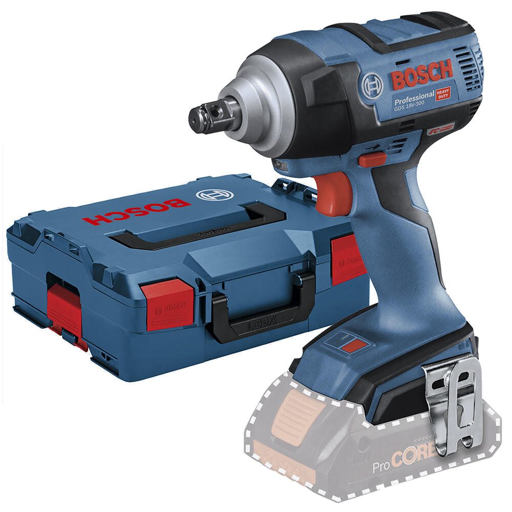 Der BOSCH Professional Akku-Schlagschrauber GDS 18V-300 ist ein leistungsstarkes Werkzeug, das speziell für professionelle Anwendungen entwickelt wurde. Mit seinem bürstenlosen Motor bietet dieser Schlagschrauber eine hohe Effizienz und Langlebigkeit, wodurch er sich ideal für anspruchsvolle Schraubarbeiten eignet. Die Betriebsart ist Akku, was Ihnen die Freiheit gibt, auch an Orten ohne Stromanschluss zu arbeiten. Ein herausragendes Merkmal dieses Modells ist die Auto Bolt Release (ABR) Funktion, die ein schnelles und sicheres Lösen von Schrauben ermöglicht. Dies spart Zeit und Aufwand, insbesondere bei wiederholten Anwendungen. Der Schlagschrauber ist in einem ansprechenden blau/schwarz Farbton gehalten, der nicht nur modern aussieht, sondern auch die Professionalität des Werkzeugs unterstreicht. Die Lieferung erfolgt inklusive einer L-BOXX 136, die nicht nur den Schlagschrauber selbst, sondern auch eine 1/2 L-BOXX-Einlage für das Gerät sowie eine weitere Einlage für Zubehör enthält. Diese praktische Aufbewahrungslösung sorgt dafür, dass Sie Ihr Werkzeug und Zubehör stets ordentlich und griffbereit haben. Bitte beachten Sie, dass der Akku und das Ladegerät nicht im Lieferumfang enthalten sind, was Ihnen die Möglichkeit gibt, diese separat auszuwählen und zu erwerben, je nach Ihren individuellen Bedürfnissen. Der BOSCH Professional Akku-Schlagschrauber GDS 18V-300 ist ein unverzichtbares Werkzeug für Handwerker und Profis, die Wert auf Qualität, Leistung und Benutzerfreundlichkeit legen. Mit seiner robusten Bauweise und der innovativen Technologie ist er bestens geeignet für verschiedene Anwendungen im Bau- und Montagebereich.Technische Daten