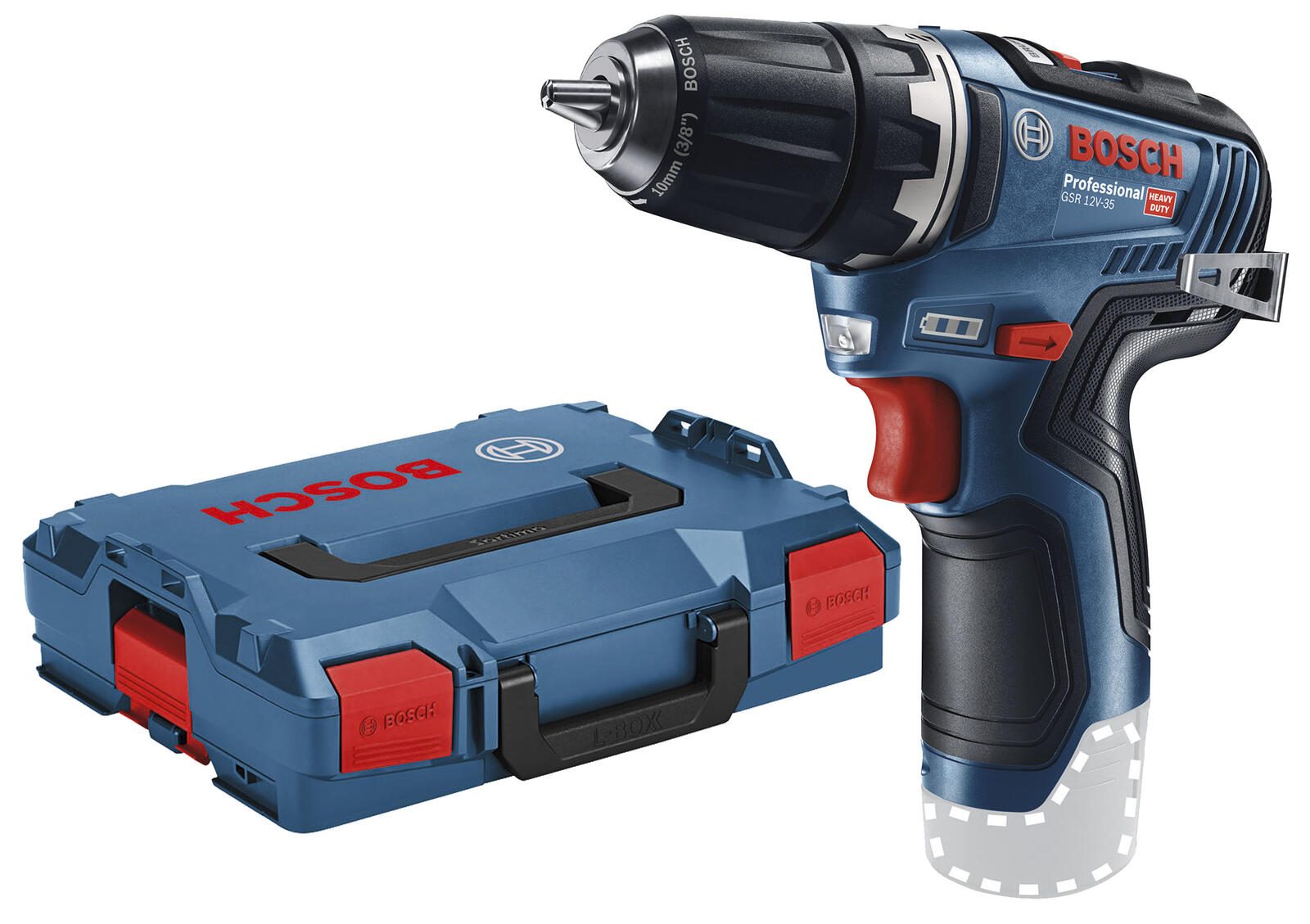 Der BOSCH Professional Akku-Bohrschrauber GSR 12V-35 ist ein leistungsstarkes Werkzeug, das sich durch seine hohe Flexibilität und Benutzerfreundlichkeit auszeichnet. Mit einem bürstenlosen Motor und einer Betriebsart, die auf Akkubetrieb basiert, ermöglicht dieser Bohrschrauber eine kabellose Freiheit, die Ihnen das Arbeiten an verschiedenen Orten erleichtert. Die integrierte Drehzahlvorwahl erlaubt es Ihnen, die Geschwindigkeit von 0 bis 460 bzw. 0 bis 1750 U/min präzise anzupassen, sodass Sie sowohl für präzise Bohrarbeiten als auch für kraftvolles Schrauben optimal gerüstet sind. Das maximale Drehmoment von 35 N·m für harte Materialien und 20 N·m für weiche Materialien sorgt dafür, dass Sie selbst bei anspruchsvollen Anwendungen beste Ergebnisse erzielen. Der Akkuschrauber ist mit einem automatischen Spannfutter ausgestattet, welches ein schnelles und sicheres Wechseln der Bits ermöglicht. Zudem bietet die Elektronikschutztechnologie, einschließlich Electronic Motor Protection und Electronic Cell Protection, einen zusätzlichen Schutz für Motor und Akku, was die Lebensdauer des Geräts verlängert. Ein weiteres Highlight ist das integrierte LED-Licht, das Ihnen auch bei schlechten Lichtverhältnissen eine klare Sicht auf das Arbeitsfeld bietet. Der weiche Griff sorgt für eine angenehme Handhabung, während der praktische Gürtelclip eine einfache Aufbewahrung während der Arbeit ermöglicht. Die Lieferung erfolgt inklusive einer L-BOXX 102, die eine sichere und praktische Aufbewahrung des Geräts gewährleistet. Mit einer Spannfuttergröße von 10 mm und einer Kapazität für Holz bis 32 mm, Stahl bis 10 mm und Schraubdurchmessern bis 8 mm, ist der GSR 12V-35 ein vielseitiges Werkzeug, das in keiner Werkstatt fehlen sollte. Die geringe Geräuschemission von 73 dB(A) und die vibrationsarmen Eigenschaften machen das Arbeiten mit diesem Akku-Bohrschrauber besonders angenehm. Insgesamt vereint der BOSCH Professional Akku-Bohrschrauber GSR 12V-35 innovative Technologien und durchdachtes Design, um Ihnen ein effizientes und komfortables Arbeiten zu ermöglichen.Technische Daten