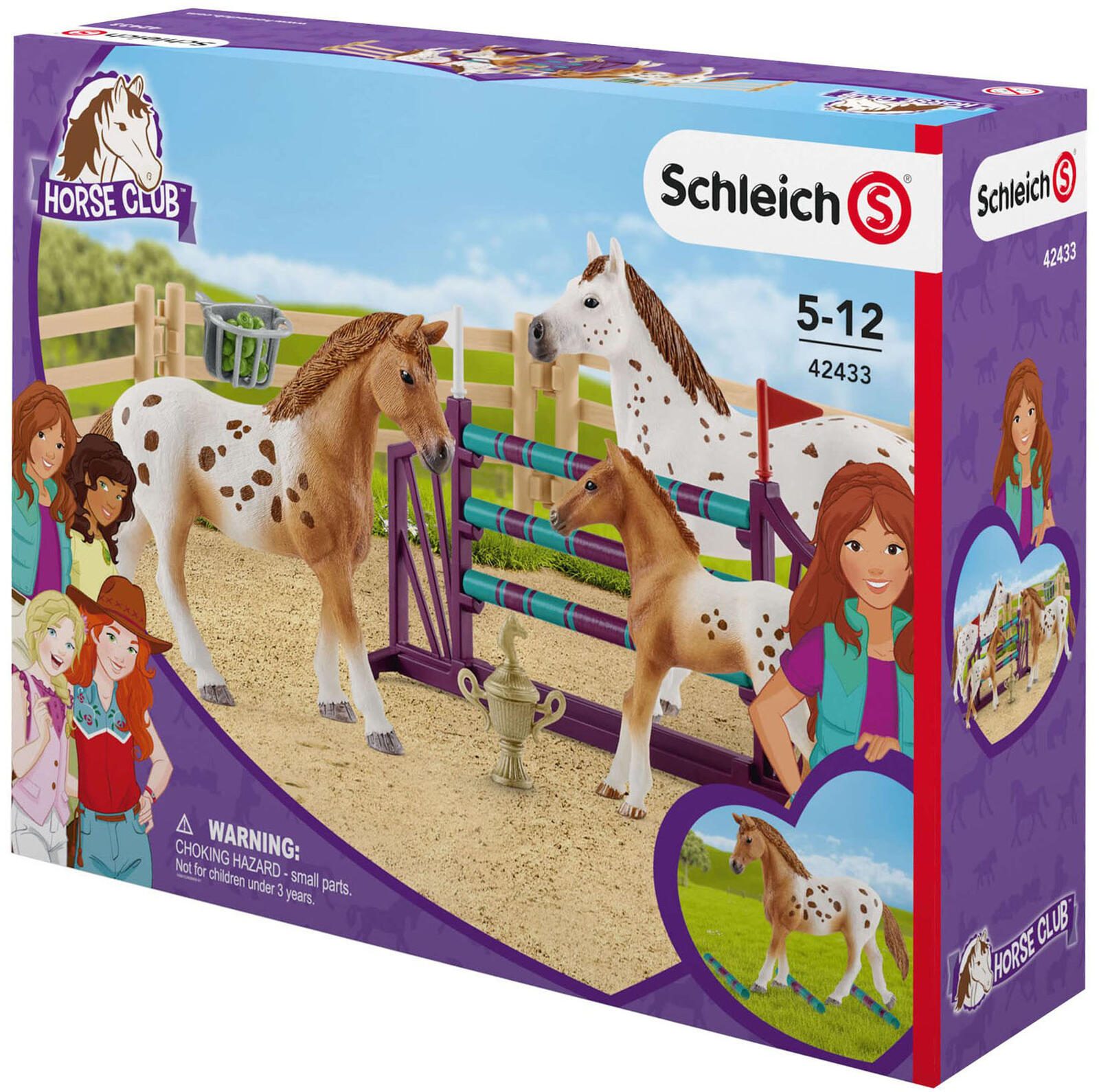 Das Schleich® Spielfiguren-Set Horse Club 42433 bietet eine faszinierende Möglichkeit, in die Welt der Pferde einzutauchen. Mit einem Inhalt von drei detailreich gestalteten Spielfiguren ist dieses Set ideal für Kinder ab fünf Jahren geeignet. Es fördert nicht nur die Kreativität, sondern auch die sozialen Fähigkeiten, indem es die Fantasie anregt und zu Rollenspielen einlädt. Zusätzlich enthält das Set vier Paddocks und verschiedene Kleinteile, die das Spielerlebnis noch abwechslungsreicher gestalten. Kinder können ihre eigenen Geschichten rund um die Pferde und deren Pflege entwickeln, was nicht nur Spaß macht, sondern auch das Verantwortungsbewusstsein stärkt. Die Spielfiguren sind robust und langlebig, sodass sie auch bei intensivem Spielvergnügen standhalten. Die Produktmaße von 5,2 x 24,5 x 19,0 cm machen das Set handlich und leicht verstaut, ideal für kleine Hände und große Abenteuer. Die Schleich Horse Club Serie ist bekannt für ihre qualitativ hochwertigen Spielsets, die durch detailgetreue Figuren und Zubehör bestechen. Jedes Element ist sorgfältig gestaltet und trägt zur realistischen Darstellung der Pferdewelt bei. Das Schleich® Spielfiguren-Set Horse Club 42433 ist nicht nur ein Spielzeug, sondern auch ein wertvolles Lernmittel, das Kinder dazu anregt, ihre Fantasie zu nutzen und Geschichten zu erzählen. Es eignet sich hervorragend als Geschenk und wird sowohl bei Kindern als auch bei Eltern großen Anklang finden. Erleben Sie die Freude am Spiel mit Schleich und entdecken Sie die unendlichen Möglichkeiten, die dieses Set bietet.