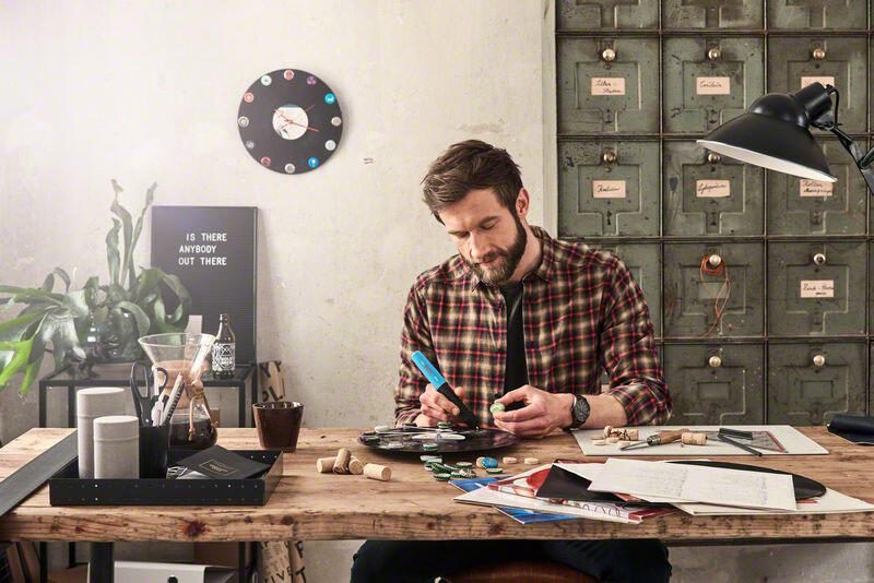Der BOSCH Gluey Akku-Heiβklebestift in elegantem schwarz/blau ist das ideale Werkzeug für kreative Bastelprojekte und Reparaturen im Haushalt. Mit seiner leistungsstarken Akkubetriebsart bietet dieser Heiβklebestift maximale Flexibilität, sodass du überall und jederzeit kleben kannst, ohne auf eine Steckdose angewiesen zu sein. Die Vielseitigkeit dieses Geräts zeigt sich in seiner Eignung für eine breite Palette von Materialien. Ob Glas, Holz, Kork, Kunststoff, Leder, Papier, Pappe oder Textil – der Gluey Akku-Heiβklebestift meistert alle Herausforderungen mühelos. Dies macht ihn zu einem unverzichtbaren Begleiter für DIY-Enthusiasten, Künstler und Heimwerker, die unterschiedliche Materialien miteinander verbinden möchten. Die Verwendung von 7 mm Heiβklebesticks sorgt dafür, dass du immer die richtige Menge Kleber zur Hand hast. Die präzise Applikation ermöglicht es dir, auch filigrane Arbeiten ohne großen Aufwand durchzuführen. Zudem sorgt das ansprechende Design in schwarz/blau nicht nur für eine moderne Optik, sondern liegt auch angenehm in der Hand, was die Handhabung erleichtert. Der BOSCH Gluey Akku-Heiβklebestift ist nicht nur funktional, sondern auch benutzerfreundlich. Dank seines kabellosen Designs kannst du ihn überallhin mitnehmen und hast die Freiheit, deine Projekte ohne Einschränkungen zu gestalten. Ob beim Basteln mit Freunden, bei Reparaturen im Haushalt oder beim kreativen Arbeiten – dieser Heiβklebestift wird schnell zu deinem bevorzugten Werkzeug. Entdecke die Möglichkeiten, die dir der BOSCH Gluey Akku-Heiβklebestift bietet, und lasse deiner Kreativität freien Lauf.Technische Daten