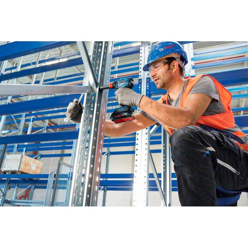 Das ansprechende Design in blau und schwarz verleiht dem BOSCH Professional Akku-Schlagschrauber nicht nur ein modernes Aussehen, sondern sorgt auch für eine hohe Sichtbarkeit, was besonders in hektischen Arbeitsumgebungen von Vorteil ist. Die robuste Bauweise garantiert Langlebigkeit und Zuverlässigkeit, sodass Sie sich auf die Qualität von BOSCH verlassen können.