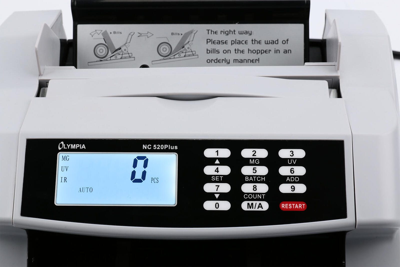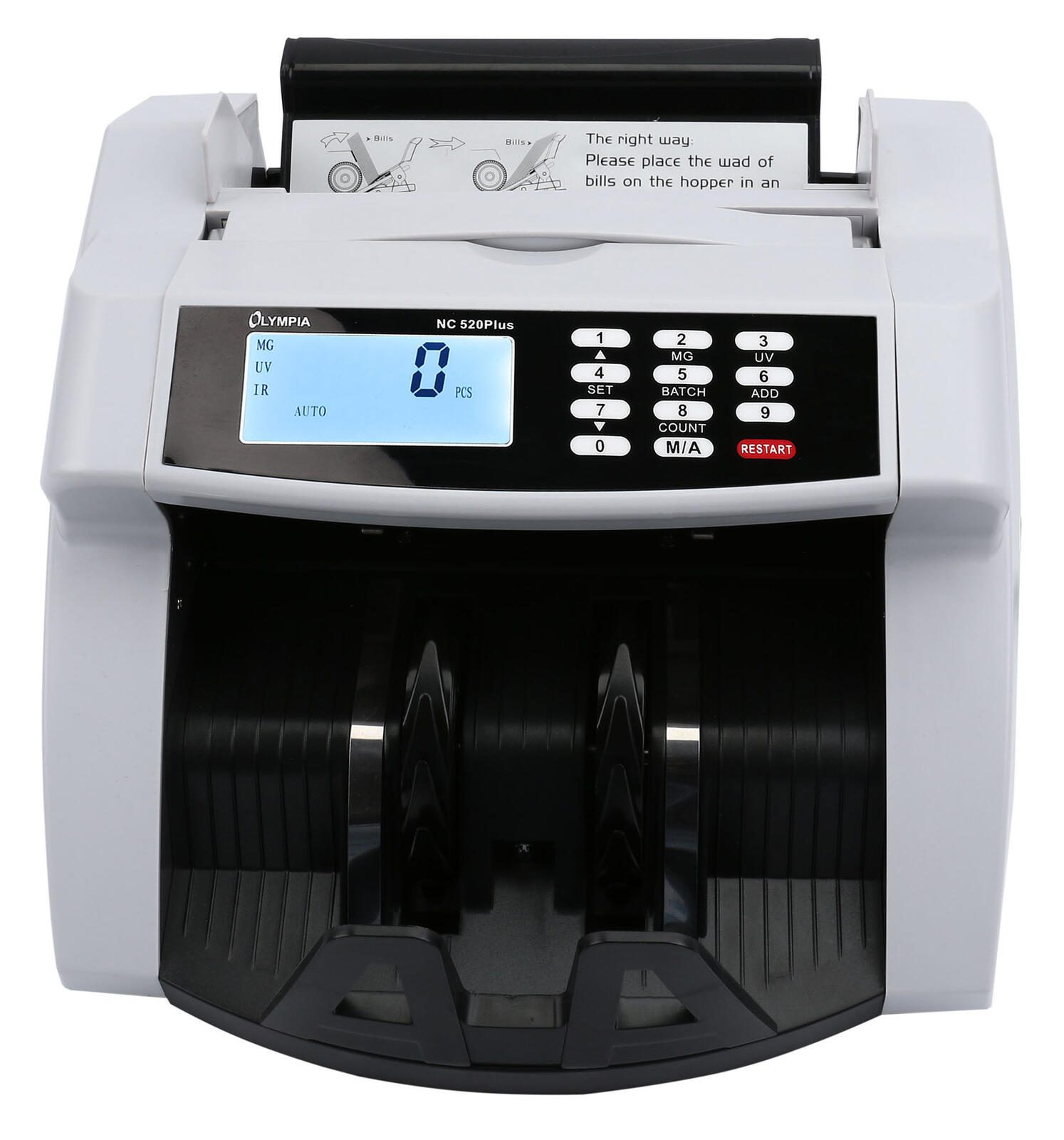 Der OLYMPIA Banknotenzähler NC520 Plus ist die ideale Lösung für alle, die einen zuverlässigen und effizienten Zähler für Banknoten suchen. Mit seinem eleganten weißen Design fügt sich dieses Gerät nahtlos in jedes Büro oder Verkaufsumfeld ein und bietet gleichzeitig eine Vielzahl von praktischen Funktionen. Dieser Stückzähler ist in der Lage, sortierte Banknoten schnell und präzise zu zählen. Mit einer beeindruckenden Geschwindigkeit von bis zu 1.000 Banknoten pro Minute sparst du wertvolle Zeit, egal ob du im Einzelhandel, in der Gastronomie oder in einem anderen Bereich tätig bist, in dem Bargeld eine Rolle spielt. Die hohe Kapazität des Einzugs ermöglicht das gleichzeitige Zählen von bis zu 100 Banknoten, was die Effizienz weiter steigert. Der OLYMPIA NC520 Plus ist für alle Währungen geeignet, was ihn zu einem flexiblen Werkzeug für internationale Geschäfte macht. Die Echtheitsprüfung erfolgt durch modernste Technologien, darunter UV- und MG-Prüfungen, die sicherstellen, dass du immer mit echten Banknoten arbeitest. Dies reduziert das Risiko von Betrug und sorgt für ein hohes Maß an Sicherheit beim Umgang mit Bargeld. Das Gerät arbeitet im Netzbetrieb, was eine konstante Leistung gewährleistet und die Notwendigkeit von Batteriewechseln eliminiert. Der OLYMPIA Banknotenzähler NC520 Plus ist nicht nur ein praktisches Hilfsmittel, sondern auch ein unverzichtbares Gerät für jeden, der regelmäßig mit Bargeld arbeitet. Vertraue auf die Qualität und Präzision von OLYMPIA und erlebe, wie einfach und effizient das Zählen von Banknoten sein kann.Technische Daten