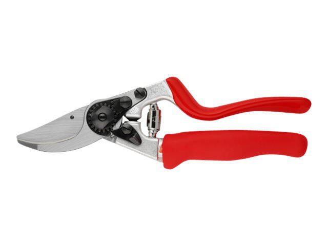 Der ergonomisch geformte Griff aus geschmiedetem Aluminium mit rutschfesten Gummielementen sorgt für sicheren Halt und erhöhten Bedienkomfort. Gepolsterte Griffe und ein stoßdämpfendes System schützen die Hände zusätzlich vor Erschütterungen. Die Schere ist mit einer praktischen Saftrille ausgestattet, die das Schneidgut sauber ableitet, sowie einem Drahtabscheider, der das Schneiden von Draht ermöglicht. Ein mikrofeiner Einstellmechanismus erlaubt die präzise Justierung der Klinge für optimale Schnittergebnisse.