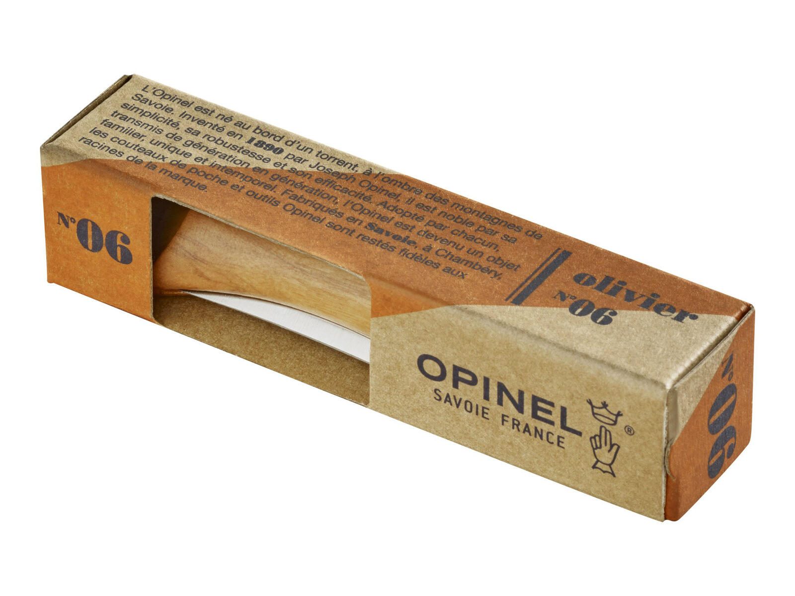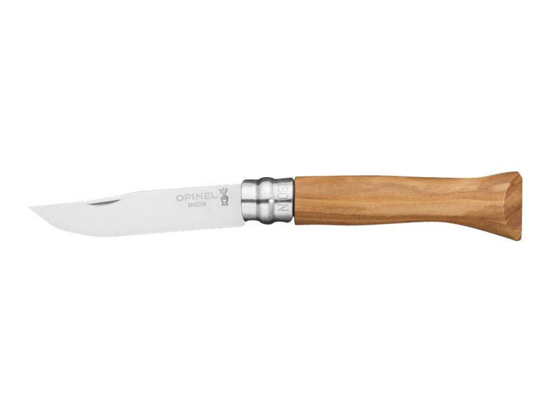 Der Griff dieses Messers besteht aus robustem Olivenholz, das nicht nur eine angenehme Haptik bietet, sondern auch für eine natürliche Optik sorgt. Die Kombination aus Stahlklinge und Olivenholzgriff macht das OPINEL Klappmesser No. 6 zu einem attraktiven und funktionalen Werkzeug.